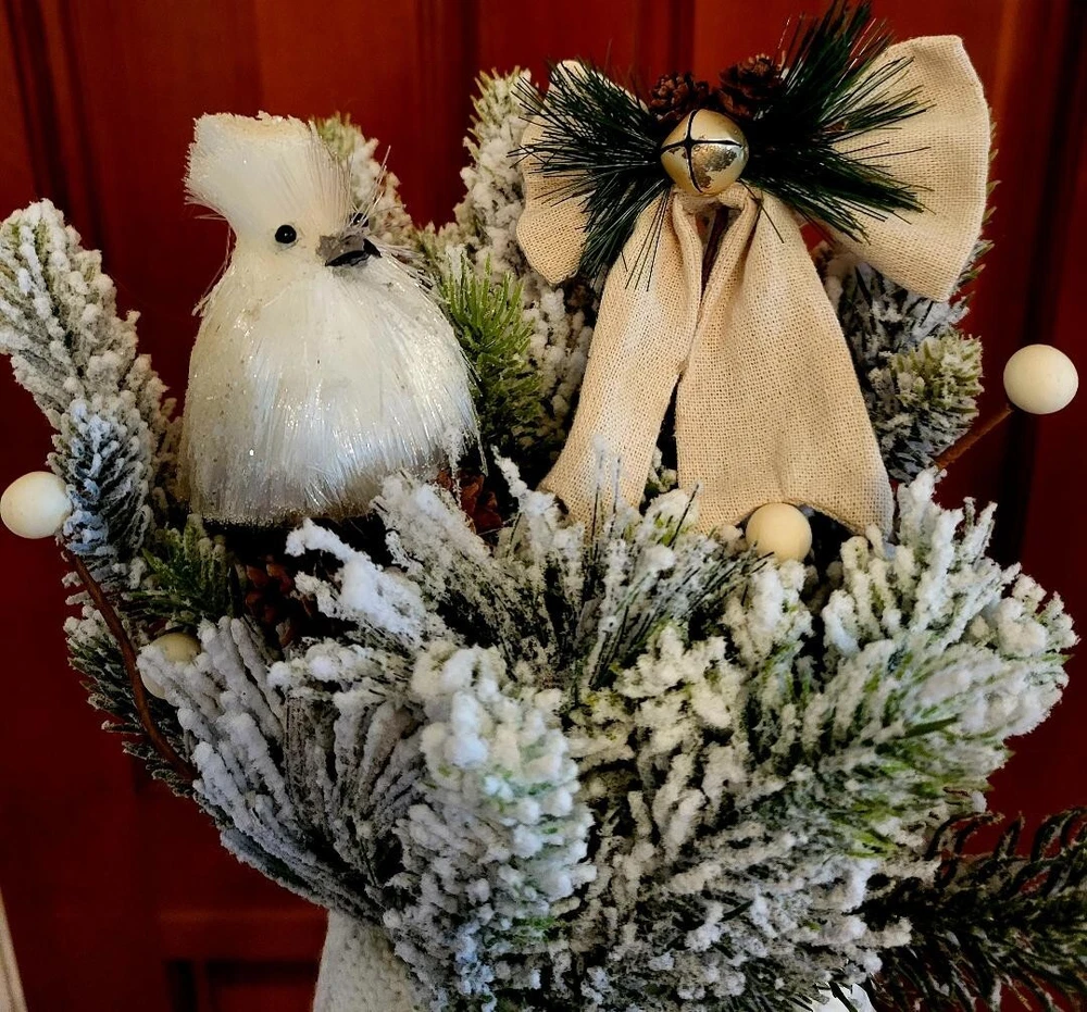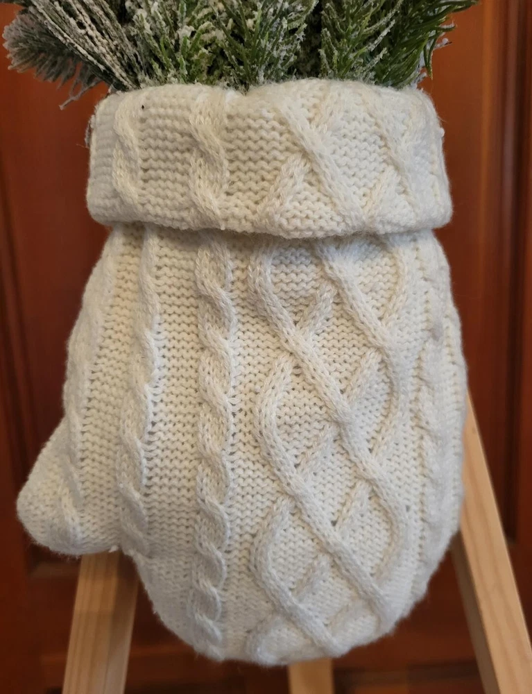 Knit Mitten Door Hanger w/ Greenery, Bird & Bow, Mitten is 8" Tall