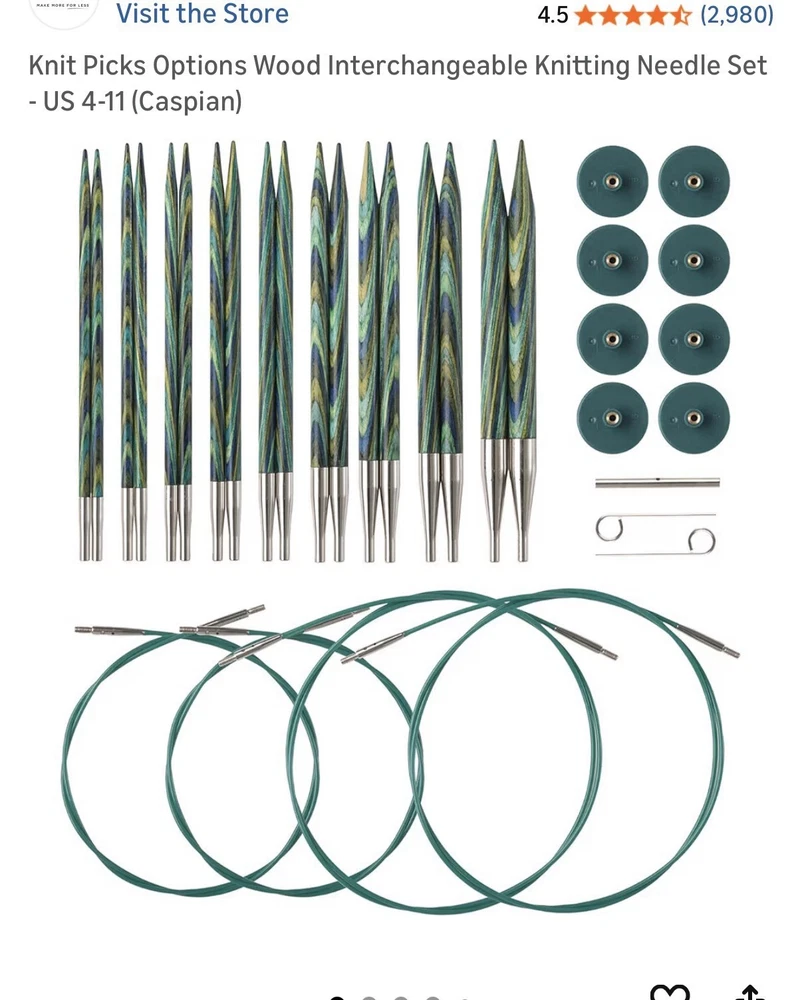 There is damage to multiple needles, some are broken, some of the round accessories are also damaged. BUT! There are several that are perfect, Hate for them not be used, they are beautiful. Price reflects - please ask if you have questions The Knit Picks Options Wood Interchangeable Knitting Needle Set includes a range of sizes from US 4 to US 11, providing versatility for various knitting projects. Made from durable wood, these needles offer a smooth and comfortable feel while knitting. The interchangeable design allows for easy switching between sizes, making them a convenient and high-quality tool for any knitting enthusiast.