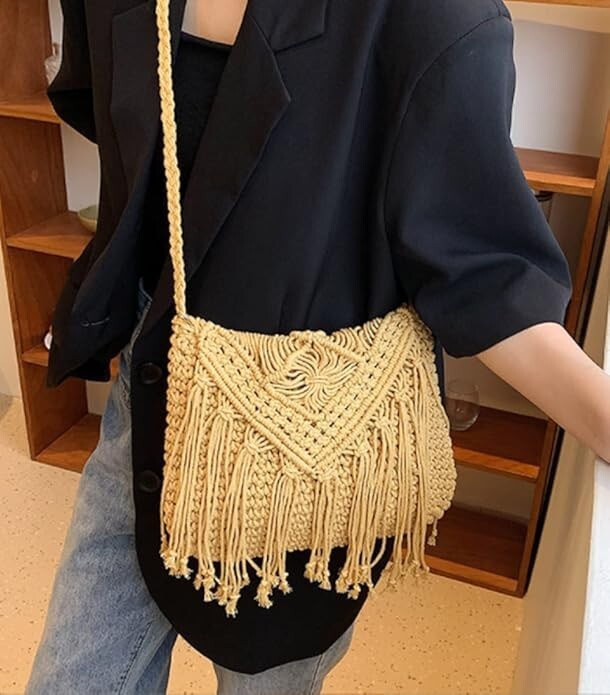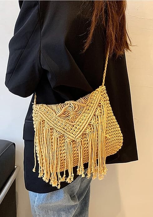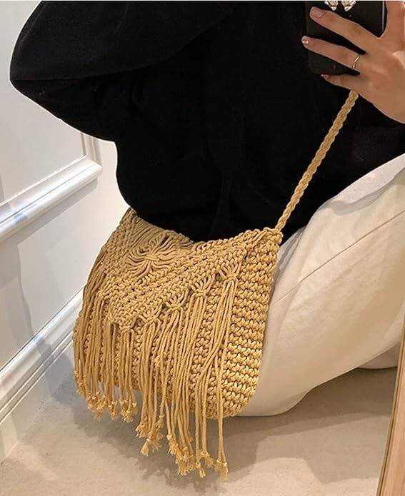 Crossbody Purse for Women Cute Macrame Hobo Satchel Bags Knit Summer Beach Bag Tassels Shoulder Crochet Tote Handbag About this item : . Cute Tassels Hobo Shoulder Bag: The surface of this summer purse is polyester, high-quality, wear-resistant fashionable, unique, versatile. It is suitable for matching with all kinds of clothing styles and occasions to make you look more beautiful and charming. Fashion, Cute, Beautiful Summer Bag! . Small Summer Beach Bag: 11.02“ * 1.18“ * 9.05” (L x W x H). Leisure and elegant tassels purse could hold essentials such as mobile phone, keys, wallet, makeup, tissues and more, perfect for wearing when traveling. . Multifunctional Crossbody Purse : It can be used as beach bag, summer purse, phone purse, clutch purse, evening bag purse, picnic bag, travel bag, decorative bag, etc. Multiple colors to match various outfits. . Ideal Gift: This hobo purse makes an awesome, unique gift that is useful and stylish. Perfect as a birthday gift, anniversary gift, graduation gift, to give to the person you love. . All-match Style: The crossbody bag is suitable for matching various styles of clothing and occasions. The advantages of cute capacity and fully enclosed allow this purse to hold items safely without worrying about loss.