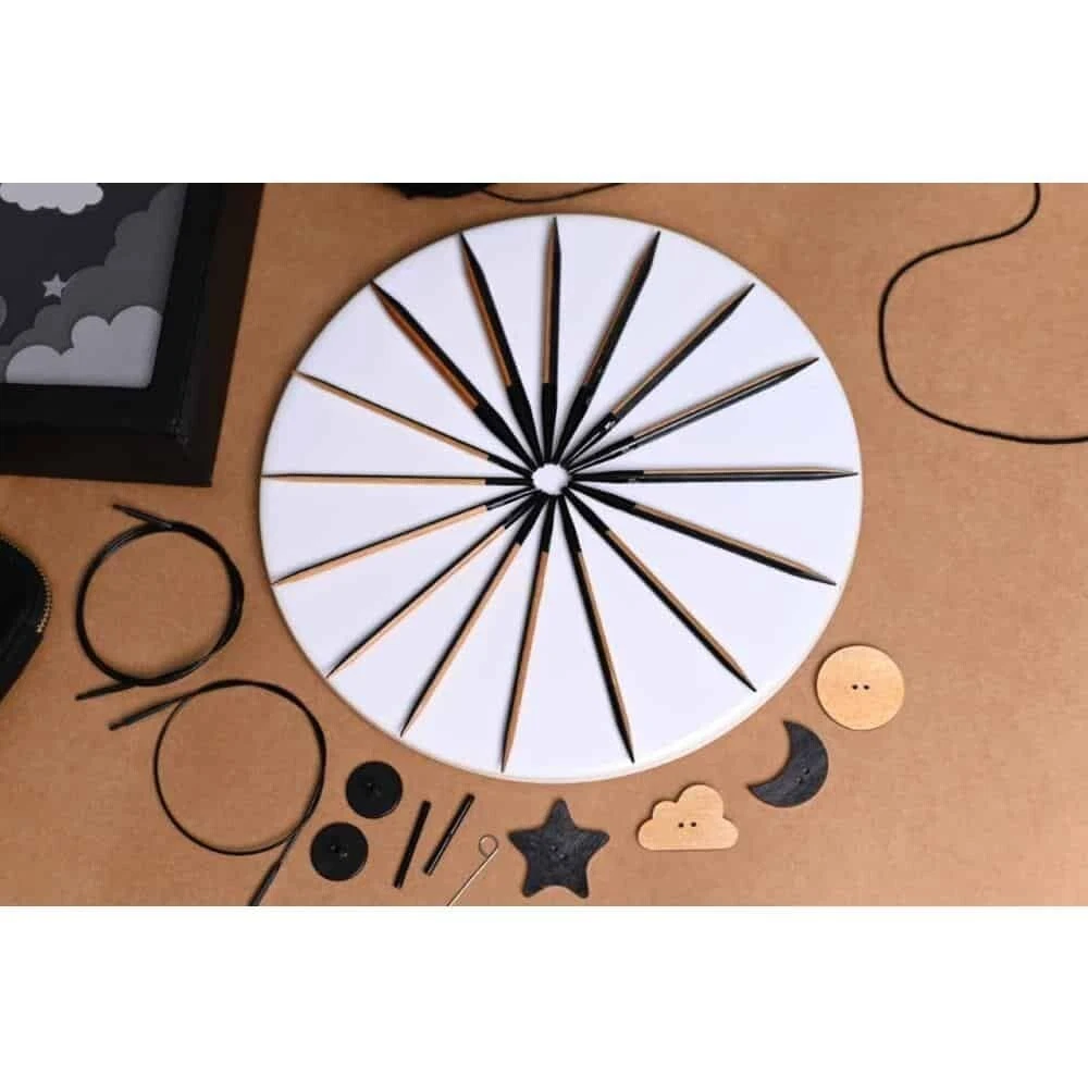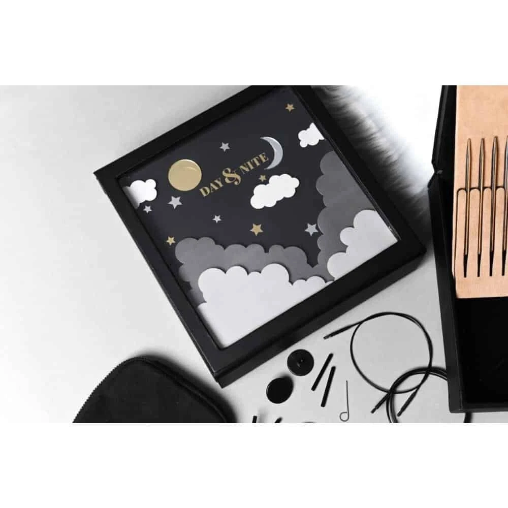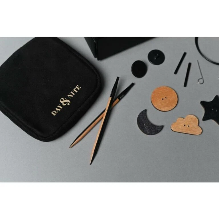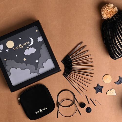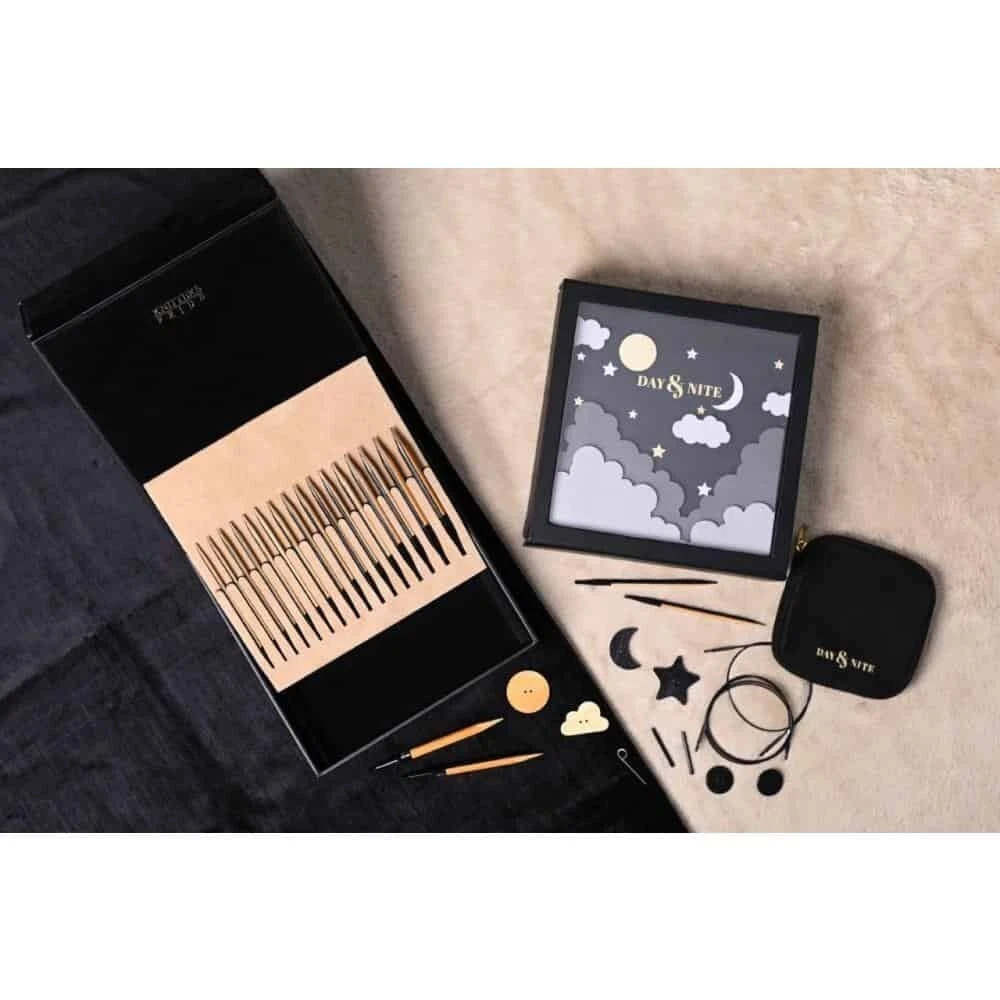 Knitter’s Pride 2022 Day & Nite Interchangeable Needle Set ~ beautiful needles! Providing a reason to relish the festive season and giving life to the fiber artist’s imagination, Day & Nite, the Holiday Gift Set, consists of joyously designed needles that are beautifully crafted to provide incessant pleasure while knitting warmth for the loved ones. This set has unique needles that feature 2 colors of wood to give a split color design. 8 pairs of size-marked needle tips: US 4, 6, 7, 8, 9, 10, 10.5 & 11 4 stainless steel cords: 360° swivels in 24″, 32″, & 40″ 4 end caps, 2 locking keys, one set of cord connectors Extra bonus: 4 wooden Day & Nite themed buttons And, a classic Day & Nite soft case stores it all, providing instant organization and portability. When these sets are sold ~ poof, they are gone! No international shipping.