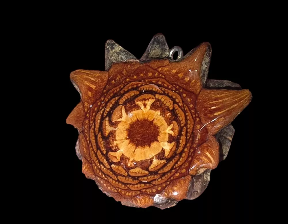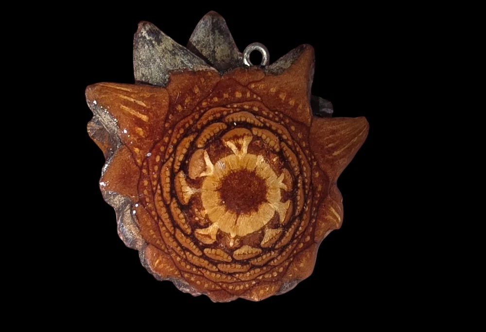 Knobcone Slice Pendant. Shipped with USPS First Class. Made from the Knobcone pine tree from California. Rare and hard to acquire even if you live near the trees. The color looks different in the pictures due to the light that is why I am taking close up pictures of the color. Comes with a Brown leather 18" or 20" corded necklace or a sterling silver chain. Please let me know when you purchase the pendant which one you prefer. Knobcone and lodgepole pinecones react uniquely to prolonged heat exposure. Do not wear while tanning for over 1.5 hours without getting into some shade. Please don't leave them hanging from your car mirror as decorations. The result of extended heat exposure is a slow and steady expansion of the pinecone slice itself, resulting in a "expanded" appearance and will not be able to be worn..I included information on why this is very important. These pendants are sturdy and should last a lifetime of daily use with that in mind. Secondtimearound Pinecone Talismans represent a reclamation of the emblematic power and natural beauty of the Pinecone, the Pineal Gland, and the ancient historical heritage accompanying one of Mother Nature's most compelling organic symbols. Secondtimearound Necklaces and Talismans are made from the polished cross-section of a living pinecone, sustainably harvested in unique micro climates, and specially cut, dried, cured and encased in protective resin. They are elegant, natural, and unique and symbolize the evolution of collective consciousness while harnessing the potent spiritual energy of the Pineal Gland and of the Third Eye Knobcone pines are different. Known as closed cone pines, knobcones require heat, usually from fire, in order to open up and release their seeds. This classic plant adaptation to fire is because the cones are effectively glued shut with resin, a phenomenon called serotiny. When the heat of fire melts the resin, the ¼-inch black seeds are released. Since knobcone pines tend to grow in fire-prone areas, they have evolved this adaptation over millennia, allowing the species to persist even if all the mature trees perish in a fire. Areas where knobcone pines were burned are soon covered in a blanket of seedlings. After a fire the seeds are released en masse, thriving because there is reduced competition from other plants. It is interesting to note that in the absence of fire, knobcone cones can eventually open after 20 or so years. Knobcone pine trees don’t usually get very tall, maxing out at about 30 feet, and they are often scruffy-looking due to their adaptation to living on poor, gravelly soils in hot, dry areas. The needles are a faded olive-green color and are borne in bundles of three. The cones are distinctive, as they grow clustered tightly around the branches in whorls rather than at the branch tips, as in other pine species. The cones are asymmetrical and since the scales are tightly shut, they appear knobby. Cones stay on the tree for years—so long, in fact, that the wood of the branches sometimes grows around them, leaving odd bulges in the branches.