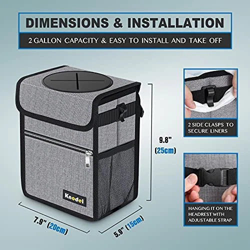 Return Policy Fast Delivery Trusted seller Knodel Car Trash Can with Lid, Leak-Proof Car Garbage Can with Storage Pockets, Waterproof Auto Garbage Bag Hanging for Headrest (Small, Gray) Product Description GIVES YOU A CLEAN CAR - Due to the sufficiently long adjustable straps, the Knodel car trash is able to be placed anyw, so it is suitable for all kinds of vehicles. With a large storage capacity, you can throw all kinds of trash into it, while it gives you a clean and tidy car. SUPERIOR DURABILITY AND WATERPROOF - The Knodel car garbage can is made of premium Oxford Polyester material. Thus, it is more firm and sturdy than similar products. The inside of the car trash bin has a waterproof lining that is durable and leak-proof, and it is easy to clean and wash. No more worrying about drink spills when you are in the car. SMART MULTIPURPOSE DESIGN - Our product is not only a trash can but can also be used as a car storage bag, since it has large capacity and it also features 2 mesh pockets and 1 zipper pocket for you to organize small items. This smart multifunctional product can be also used as a cooler bag. The thermal insulated waterproof liner holds ice to keep drinks and food cold for hours in the car. EASY TO INSTALL & COLLAPSE - It is very easy to install. Simply hanging it on the headrest, and adjust the strap to the appropriate length. If you are no longer using it, you can fully fold it and it will occupy less space. ONE YEAR WARRANTY - We are dedicated to providing our customers with high quality products and superior service. All of our Knodel Car Trash Cans come with a satisfaction . If you are dissatisfied with our product, contact us through ’s email system, and we can offer you a new one or 100% money back. So, what are you waiting for? Order NOW! Shipping Returns Payment Shipping Shipping is FREE to all addresses other than APO/PO boxes in the lower 48 states. All our stock ships from US-based warehouses. Shipped via USPS or UPS (depending on location and package weight) Unless stated otherwise, all orders will ship within 24-72 hours of your payment being processed. Check our feedback to see the great reviews of FAST shipping we offer. Returns Seller does not accept returns Payment We currently accept payment via eBay managed payments only. Once payment is cleared, we will dispatch your shipment within 1-3 business days. Please refer to the "Shipping" tab for more information regarding shipping speed to your destination.