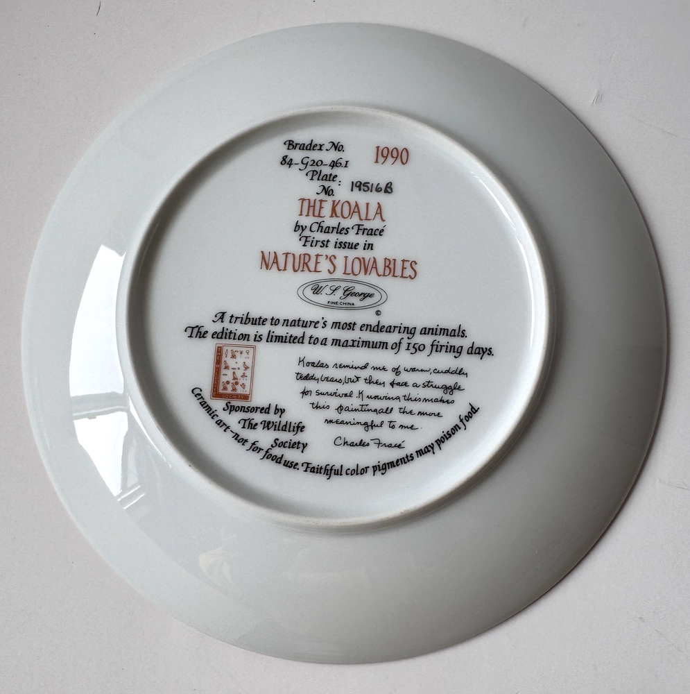 Knowles The Koala Plate Charles Fracé Nature’s Lovables 1990 Wildlife Bradex 84-