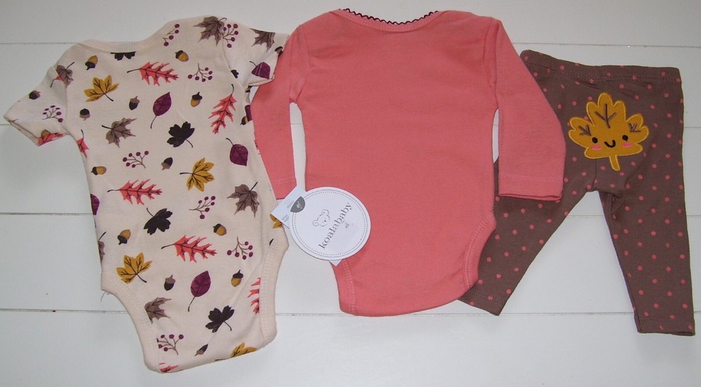 Girls Koala Baby 3 Pc Long Sleeve I'm So Cute Even Leaves Fall For Me Bodysuit/Short Sleeve Leaf/Acorn Bodysuit/ and Turn Me Around Smiling Leaf Leggings Outfit. Size 0-3 Months. New with tags. Makes a GREAT Gift! Weight: 8-12 Pounds Height: 21-24 Inches Smoke and Pet free home. Winning bidder to pay within 3 days listing end. Check out my other listings for more great deals! RETURN POLICY DETAILS Returns are accepted with prior approval ONLY if item is misrepresented in the listing. You must contact me first before returning an item. I do NOT accept returns for buyer choosing the wrong size/item not fitting. There are NO returns/refunds on pageant and special occasion wear.