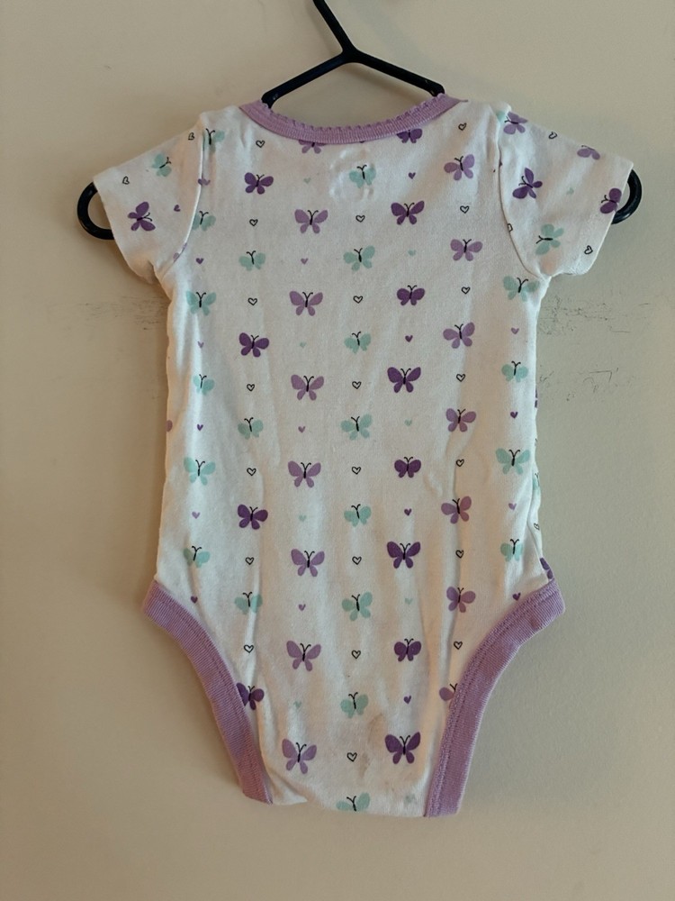 Koala Baby Girls Butterfly Hearts 100% Cotton Short Sleeve Bodysuit White 3-6M. Condition is pre-owned. Smoke free, pet free home. Shipped via USPS Ground Advantage. In very good condition. Free of rips or stains.