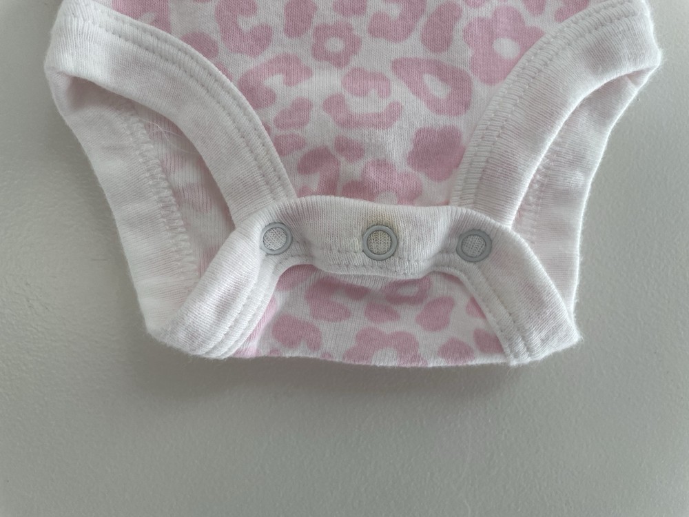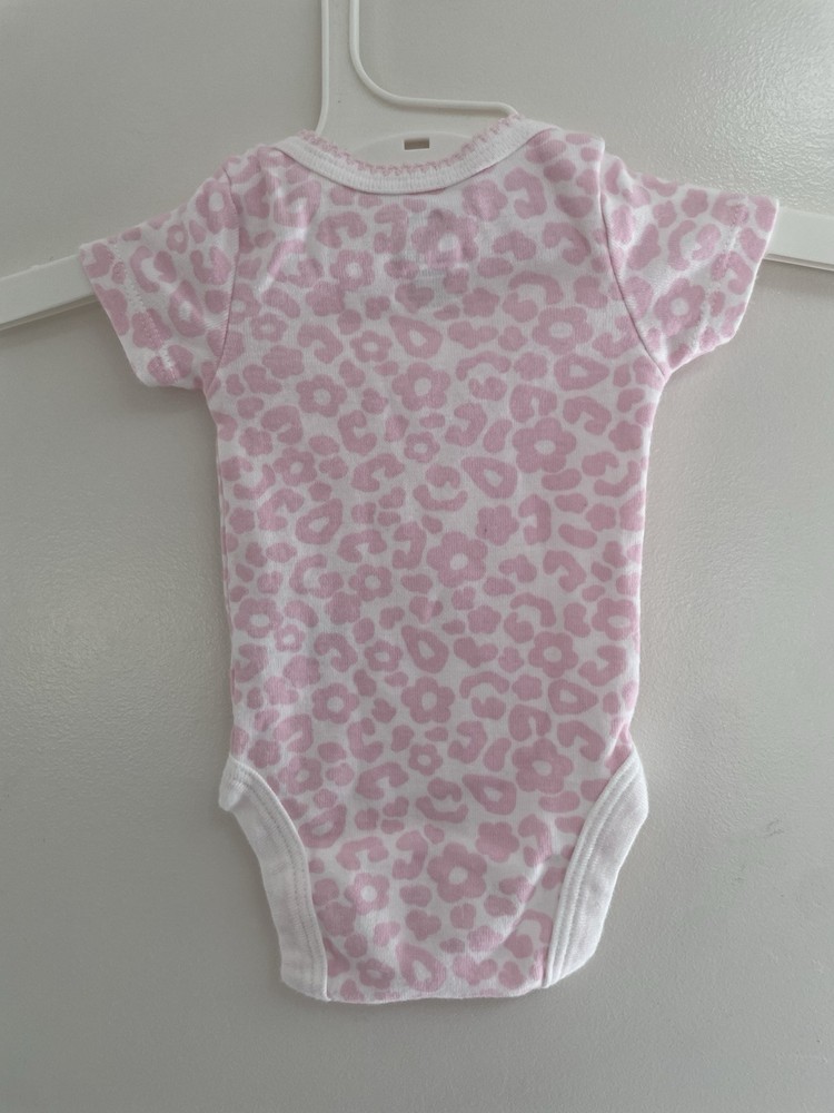 Koala Baby Girls Pink Animal Print 100% Cotton Short Sleeve Bodysuit Cream NB. Condition is pre-owned. Smoke free, pet free home. Shipped via USPS Ground Advantage. In very good condition. Free of rips or stains.