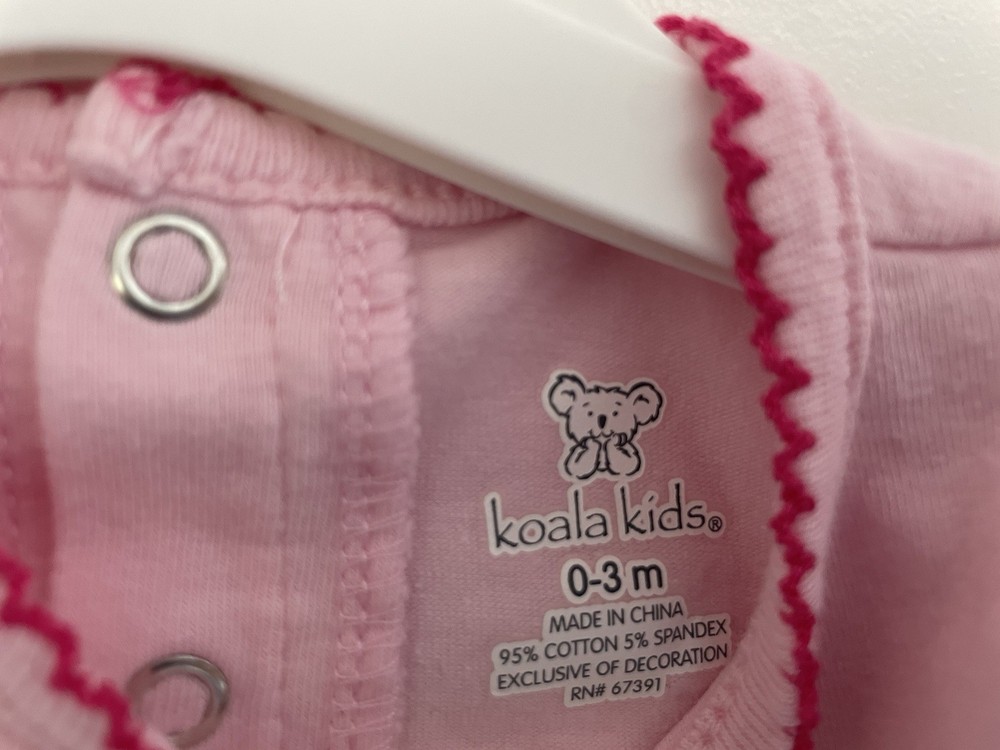 Number of Pieces: 1 Piece Accents: Embroidered, Glitter, Lace, Pleated, Sequin Closure: Snap Color: Pink Season: Fall, Spring, Summer Style: Bodysuit Country of Origin: China Set Includes: Bodysuit Occasion: Casual Type: One-Piece Sleeve Length: Short Sleeve Material: 95% cotton, 5% spandex Features: Comfort, Easy Care, Lightweight, Stretch Brand: Koala Kids Seller Notes: “In very good condition. Free of rips or stains.” Pattern: Solid Theme: Dad, Heart, Love Size: 0-3 Months Department: Girls Garment Care: Machine Washable