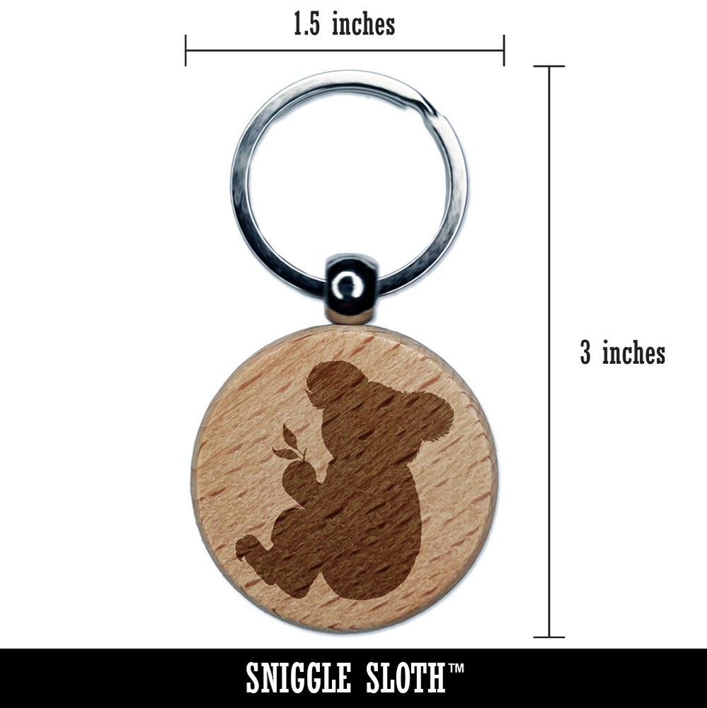 Koala Wood Keychain with Leaf Engraving - Round Charm Tag
