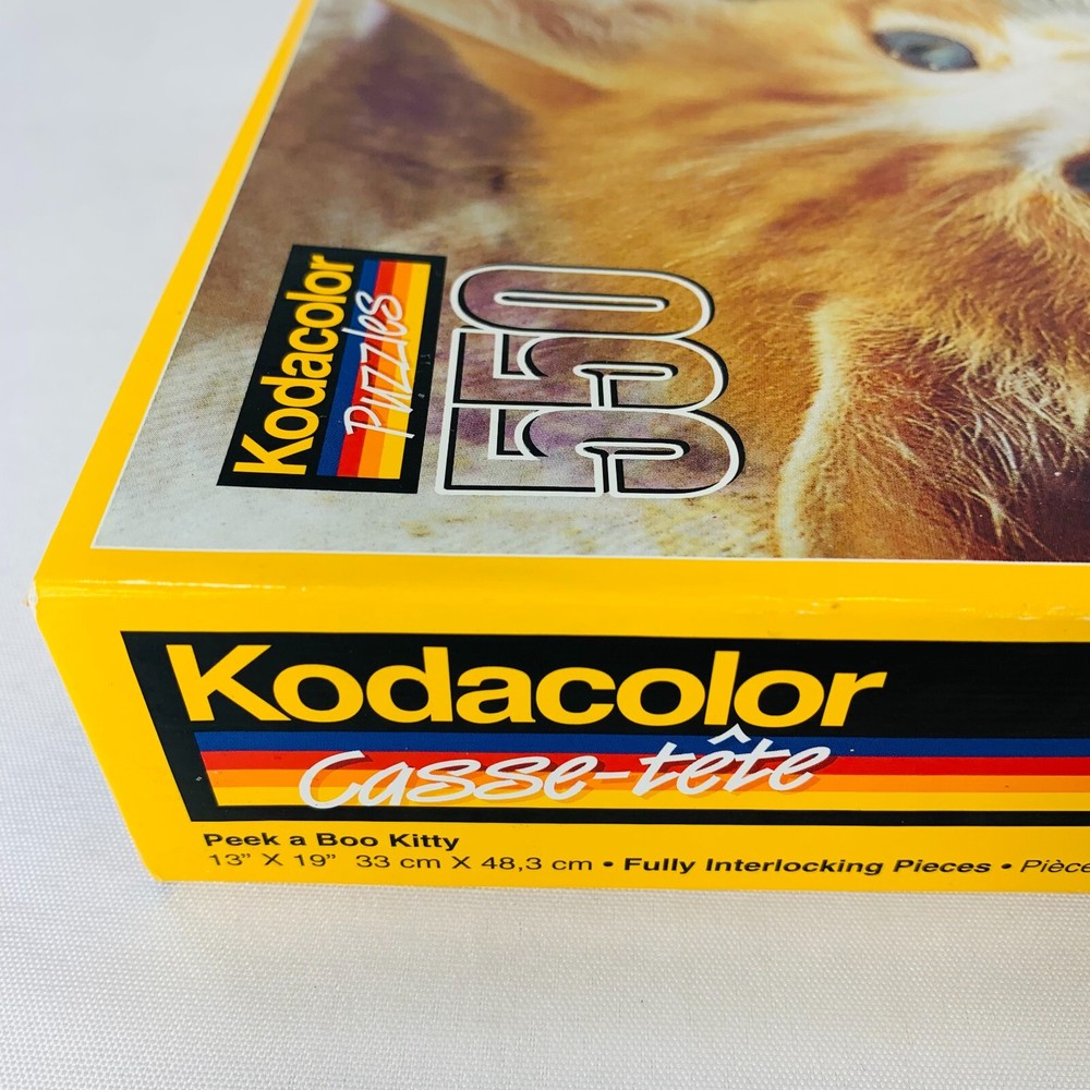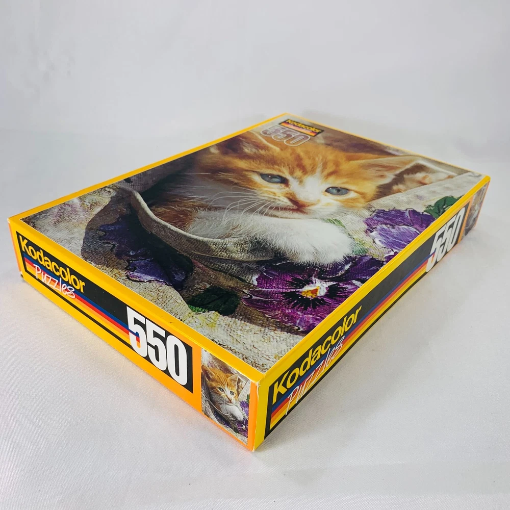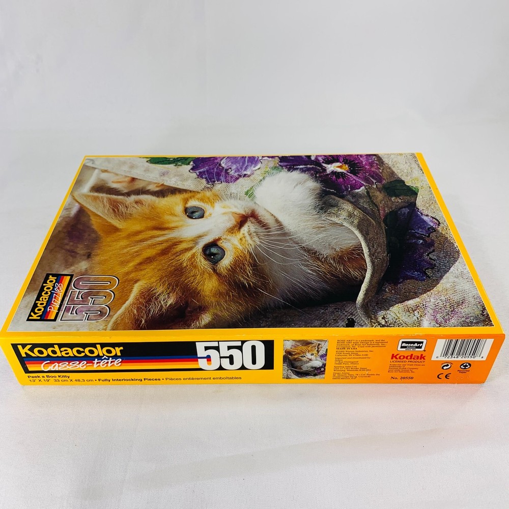 This Kodacolor puzzle kit features a fun and cute design with the PEEK A BOO KITTY theme. With 550 pieces, this puzzle is perfect for those who enjoy a challenge. The puzzle measures 13"x19" once completed and is made by a trusted brand in the industry. The multi-color puzzle is sure to please anyone who loves a good puzzle and wants to add a touch of whimsy to their day. IF there are any imperfections, they will be shown in photos. We are a smoke-free & pet-free home! 💙Retro&Beyond