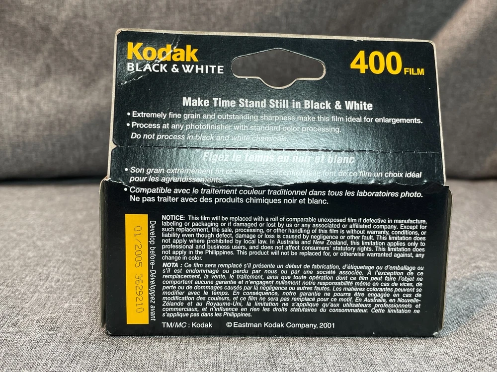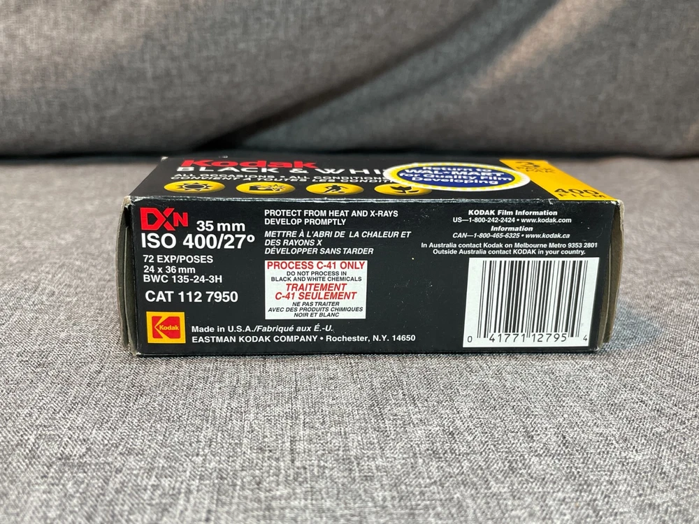 Number of Photos:72 TotalFilm Speed:400 ISOBrand:KodakFilm Format:35 mm/135 Printgtin13:041771127954Series:Black And WhiteUPC:041771127954Expiration Date:01/2005Type:Black & WhiteCountry/Region of Manufacture:United States