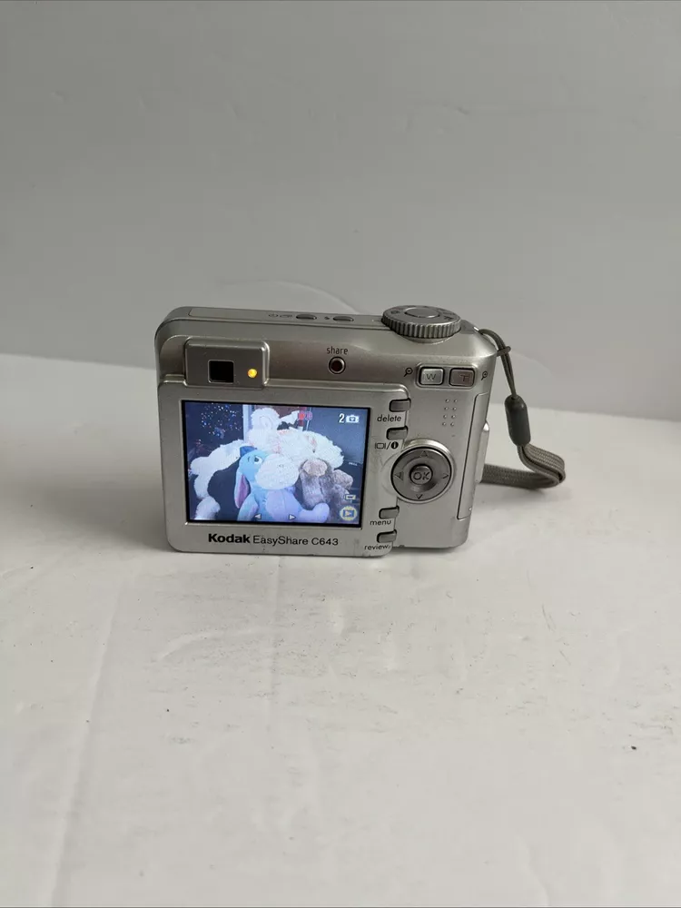 This Kodak EasyShare C643 compact digital camera is a great addition to your photography collection. With a maximum resolution of 6.1 MP and a 3x optical zoom, this camera produces high-quality images that are sure to impress. The camera features a 2.4-inch screen size and a silver color that looks stylish and sleek. In addition to its great image quality, this camera also comes with a host of features that make it easy to use, including direct print, audio recording, date/time stamp, auto power save, and PictBridge support. The camera uses AA and CR-V3 batteries and weighs 5.1 oz. It is a perfect choice for anyone looking for a reliable and easy-to-use digital camera.