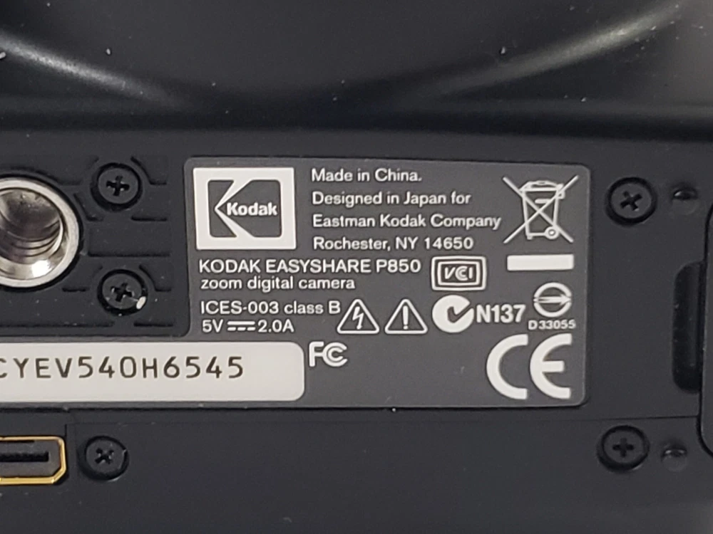 Kodak EasyShare P850 Digital Camera With Battery Tested Works This has been tested and it works well. I do not have the charger.