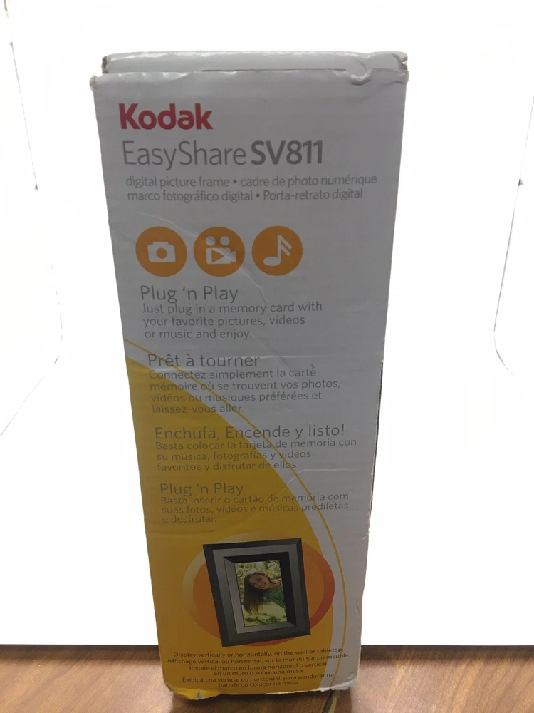 Enjoy your favorite memories with this Kodak Easyshare SV811 digital picture frame. With an 8-inch screen size, this frame is perfect for showcasing your favorite photos. The frame is part of the Kodak EasyShare series and comes with a USB connectivity option. This digital picture frame also features a remote control and is perfect for those who want to display their photos in a stylish and modern way. Whether you're a photography enthusiast or just looking for a simple way to display your favorite memories, this Kodak Easyshare SV811 digital picture frame is a great choice.