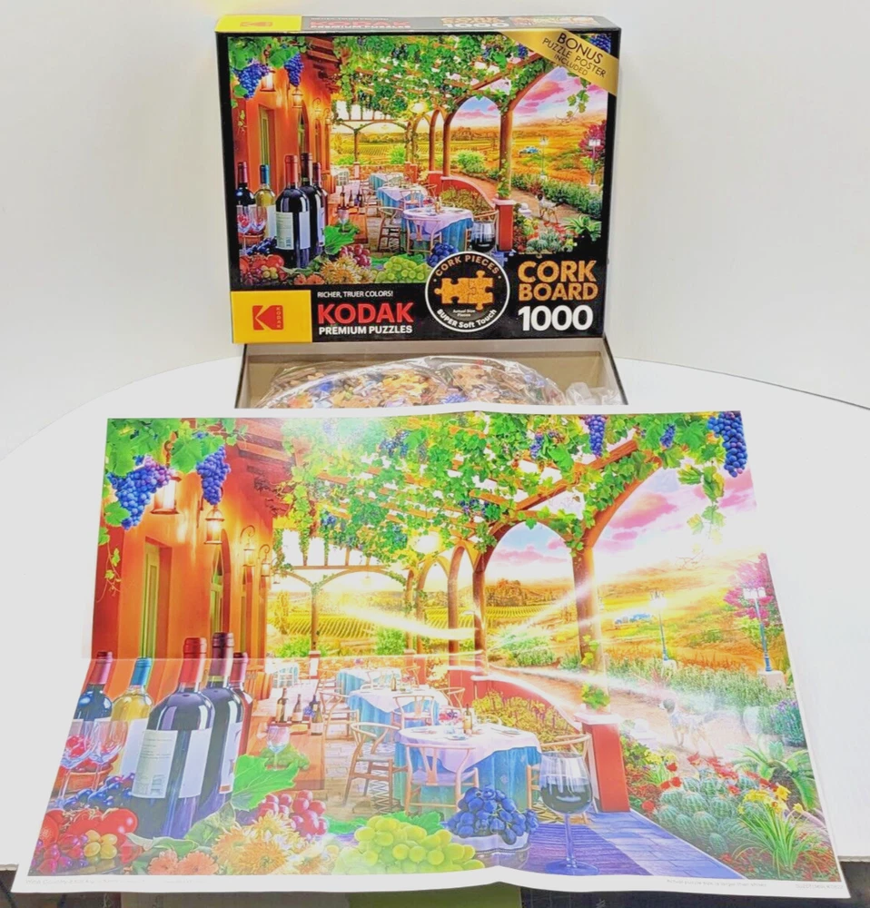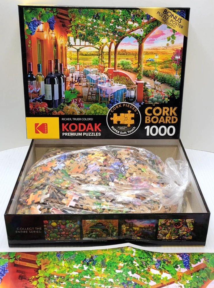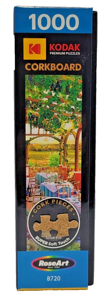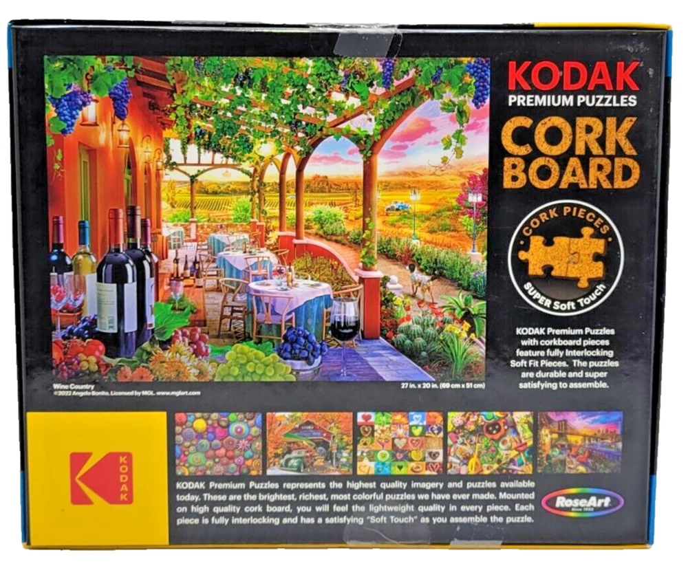This is a Kodak / RoseArt corkboard puzzle, by artist Angelo Bonito. Beautiful rural vineyard setting. Copyrighted 2022. Puzzle is 27 x 20" when completed. The corkboard pieces are fully interlocking "Soft Fit Pieces." We did not work the puzzle or count the pieces. Each item is carefully packaged to prevent any damage and is shipped immediately with tracking.