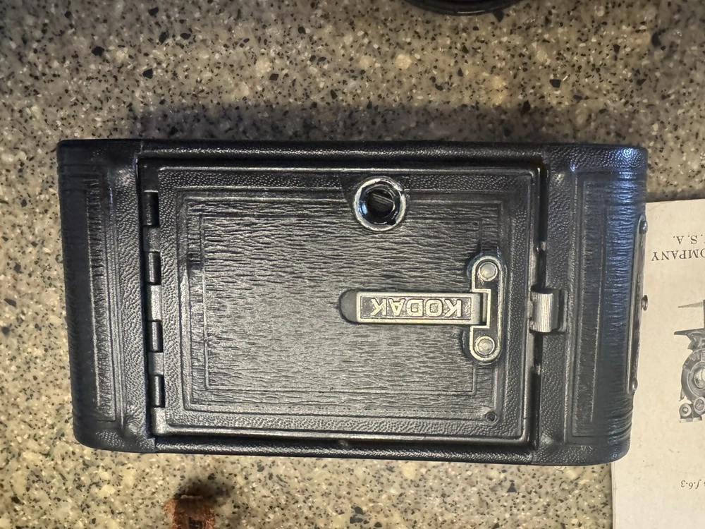 This vintage Kodak Series III Autographic Vest Pocket Folding VPK Camera in Pouch is a true gem for any photography enthusiast. The camera is perfect for those who love to capture stunning photos and memories. It comes with a range of features that make it stand out from the rest, including its brand - Eastman Kodak. The camera is ideal for those who are into vintage cameras and looking for a unique addition to their collection. It is perfect for capturing stunning photos and memories, and its compact size makes it easy to carry around. The camera is a must-have for anyone who loves vintage cameras and wants to own a piece of history.