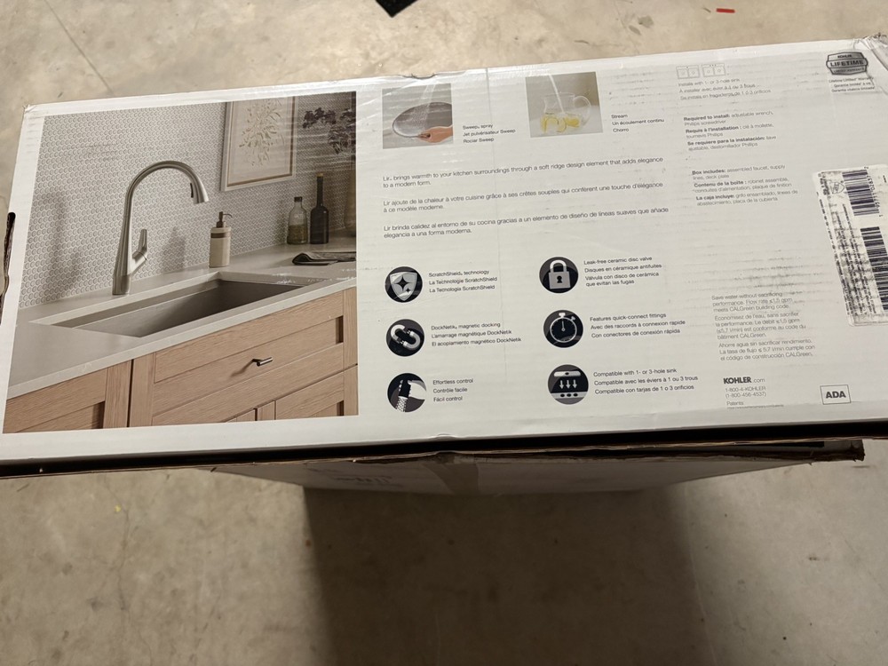 Item is new, open box The Kohler Lir Pulldown Kitchen Faucet R33449-VS in Vibrant Stainless Finish is a stylish and functional addition to any kitchen. This deck-mounted, pull-out faucet features a single lever handle for easy operation. Made of durable stainless steel, it is suitable for kitchen sinks and has a sleek stainless finish that complements any kitchen decor. With its high-quality construction and reliable performance, this Kohler kitchen faucet is a great choice for enhancing your kitchen experience.