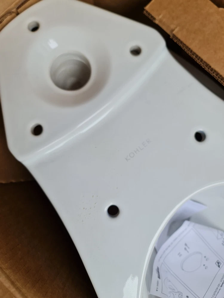 Has minor signs of use. One of the small tabs of the toilet tank cover is slightly cracked off. Please see photos. Includes brand new O-Ring. In original box. With gentle curves, Maxton delivers a softened approach to contemporary style. The Maxton toilet features AquaPiston technology, a patented flush engine that delivers a fast, powerful, and virtually plug-free flush. A 1.28-gallon flush provides significant water savings of up to 16,500 gallons per y ... Read More Features Two-piece design Elongated bowl offers added room and comfort Comfort Height feature offers chair-height seating that makes sitting down and standing up easier for most adults 1.28 gpf (4.8 lpf) Left-hand Polished Chrome trip lever View More Dimensions Overall Height 31-3/8" in. Overall Width 16-3/8" in. Overall Depth 29-5/16" in. Bowl Height Comfort Rough-in 12 in. Specifications Specifications Sheet Installation Three-bolt quick-connect installation Standard 12" (305 mm) rough-in