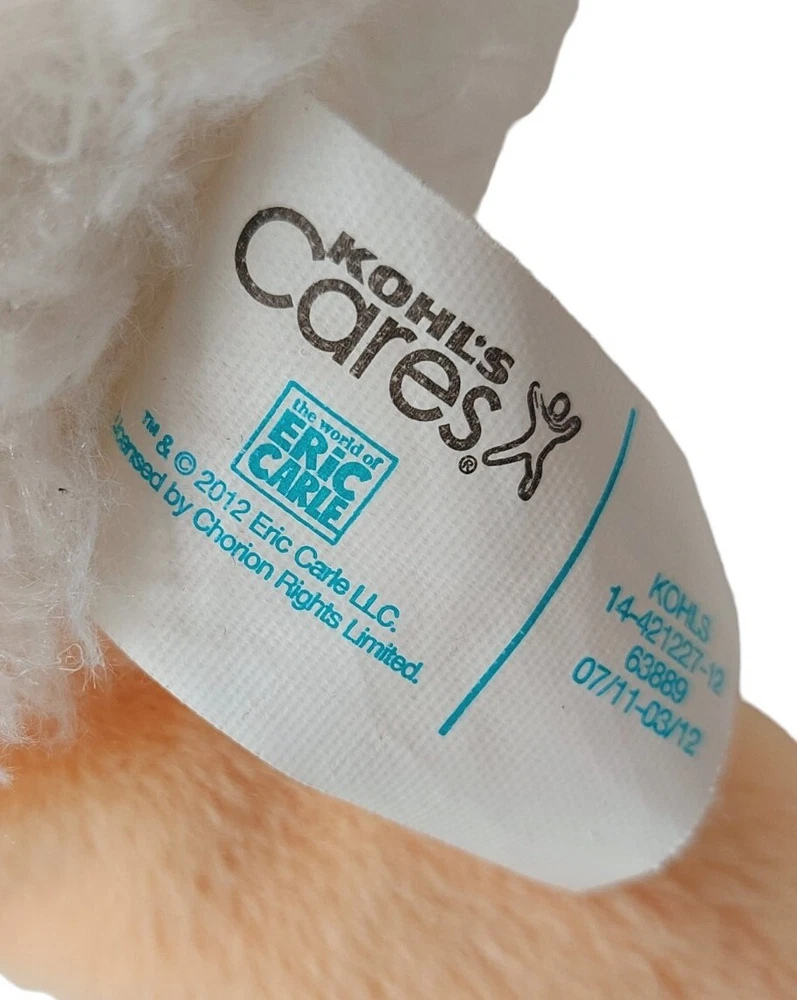 Features:WashableOccasion:BirthdaySize:Small (6-14 in)UPC:Does not applyCharacter Family:Eric CarleBrand:Kohls CaresColor:WhiteAnimal:Lambgtin13:Does not apply