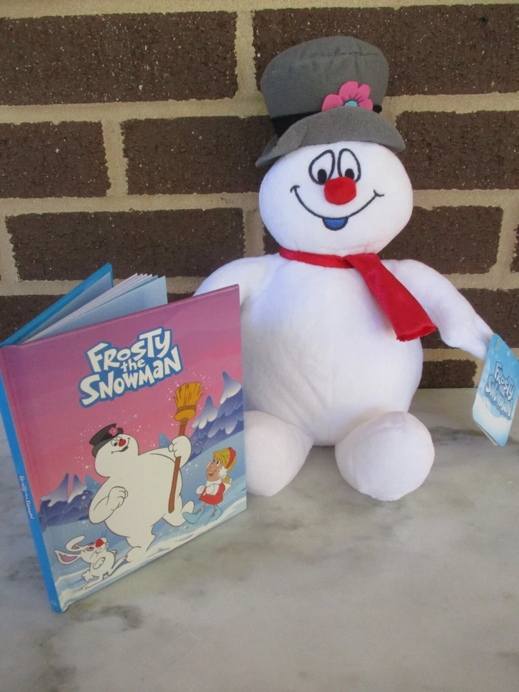 KOHL'S 2021 PLUSH STUFFED FROSTY THE SNOWMAN IN CLASSIC OUTFIT MADE ONTO COMES WITH LITTLE 5" X 7" HARDBACK BOOK "FROSTY THE SNOWMAN " EMBROIDERY SEWN FACIAL FEATURES NEW WITH TAGS VERY GOOD, CLEAN CONDITION NO SMOKING
