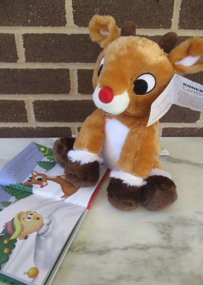 KOHL'S CARES 2021 PLUSH STUFFED RUDOLPH THE RED NOSED REINDEER SHADE OF BROWN WITH DARK BROWN HOOVES WHITE FUR LOOK END OF TAIL/TOP OF HOOVES CHEST HAIR RED VELOUR FEEL NOSE COMES WITH LITTLE 5" X 7" HARDBACK BOOK "RUDOLPH THE RED-NOSE REINDEER " EMBROIDERY SEWN FACIAL FEATURES NEW WITH TAGS VERY GOOD, CLEAN CONDITION NO SMOKING