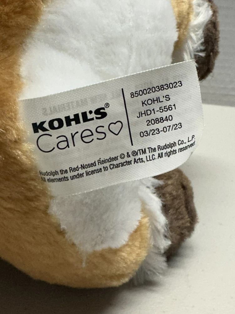 The product is a Kohl's Cares Rudolph The Red Nose Reindeer plush toy measuring 8 inches. It is a small multicolor stuffed animal ideal for Christmas, featuring the character Rudolph. Suitable for children aged 3 to 11, the toy is part of the Character Family Rudolph and is not a modified item. This plush toy would be a delightful addition to any child's toy collection, especially for those who enjoy the classic Christmas tale of Rudolph the Red Nose Reindeer. Pink dot box