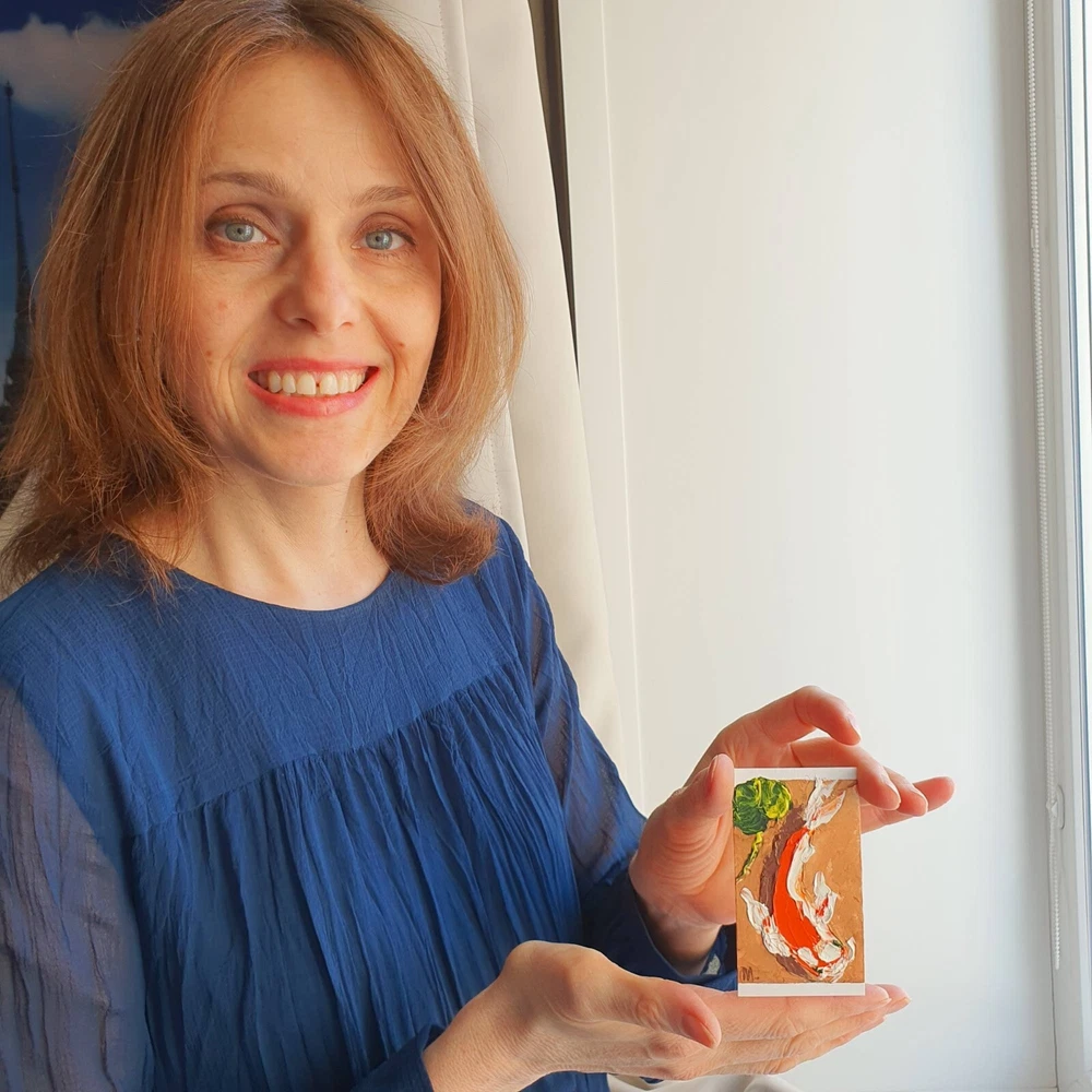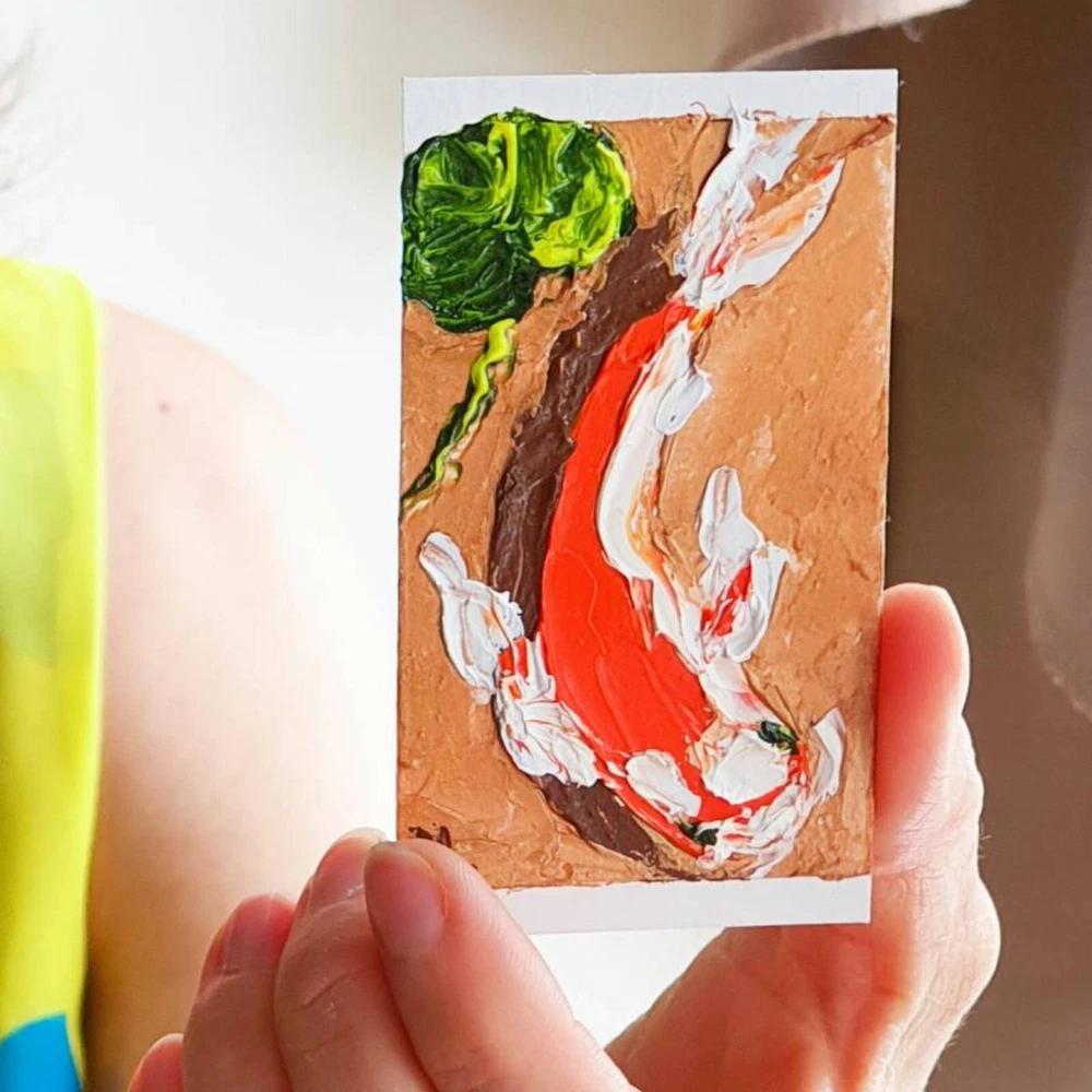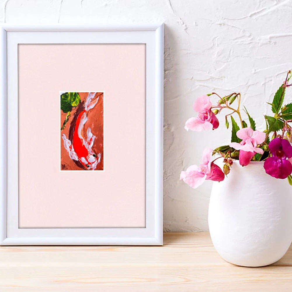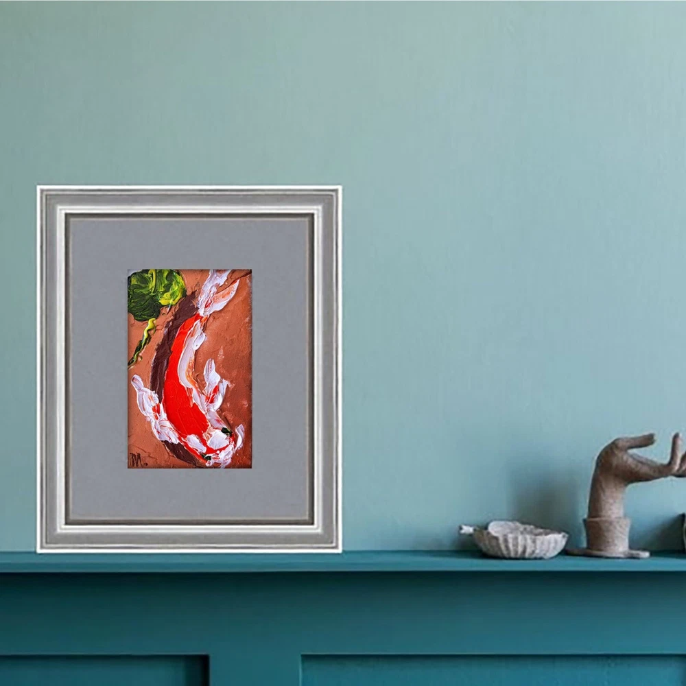 Delve into the tranquil essence of nature with Marina Fisher's original Koi Fish painting, an artful expression of the Japanese spirit. This small, unframed piece measures 3 inches in height and 2 inches in width, perfect for adding a touch of serenity to any space. The artwork, created in 2021, boasts a one-of-a-kind impasto technique that brings the gentle movement of the carp to life, encapsulating the beauty of aquatic life within contemporary art. Crafted with care in Alaska, USA, this oil painting on cardboard is a testament to the fusion of impressionism and modernism, signed by the artist herself. It comes with a Certificate of Authenticity, ensuring its provenance and hand-painted distinction. This piece is not part of a custom bundle and is an exclusive unit that celebrates the intricacies of domestic and family life, hobbies and leisure, and the richness of Asian cultures. This is a 100% original painting! One of a kind! I can paint a similar painting CUSTOM MADE. Your painting will be very similar in color and composition, but not exactly. Five working days for painting. *I can also paint a painting of a different size. Just contact me. *Sent with tracking code. *Packaged very tightly to protect well during international shipping. Here you buy directly from the artist. This is contemporary art. Visit my store https://www.ebay.com/str/artshopbymarina IMPORTANT *Frame is not included. The painting is not framed! The photo is an EXAMPLE of the design! *Please note that the colors/tones may appear slightly cooler or warmer on your mobile phone screen. - I use packaging material that does not pollute waste and can be recycled or reused. - The paints are for professional artists. Composition of ECO-paints: made according to traditional recipes based on high-quality pigments, binder - specially processed linseed oil and natural resins. Dear friend, sorry for the mistakes. I don't speak English. I use a translator. Thank you for visiting! Sincerely, artist.
