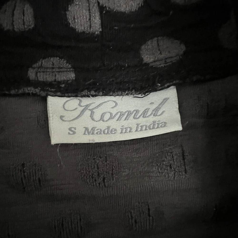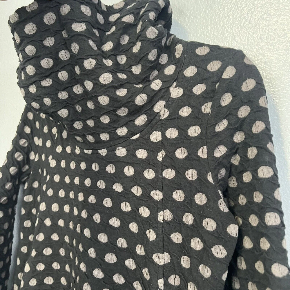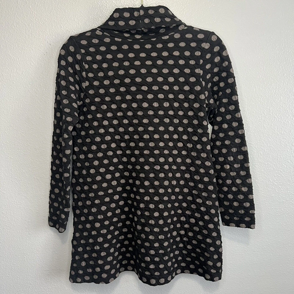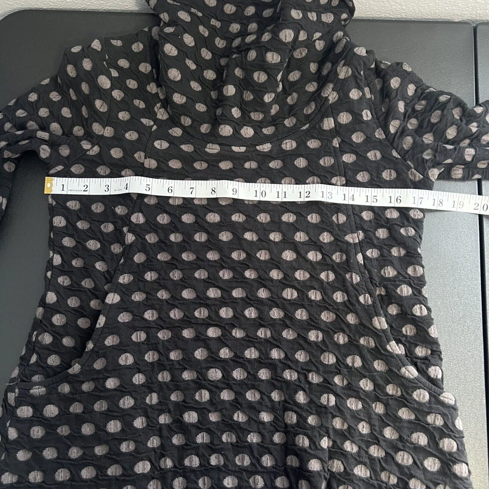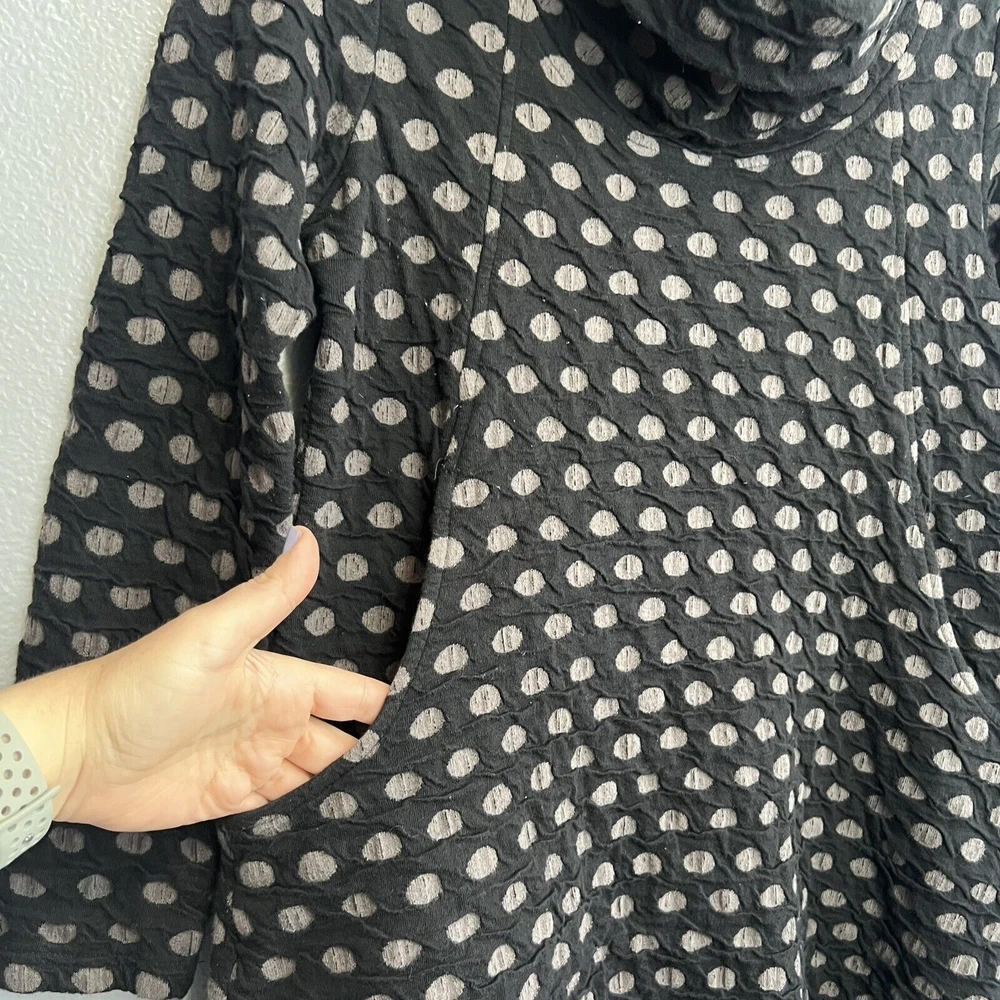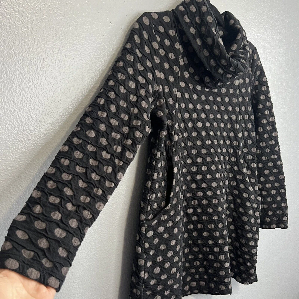 Komil Honeycomb Cowl Neck Long Sleeve Tunic - Women's size Small. Cotton blend top with a honeycomb pattern. Black and gray. Pockets. Made in India. Good pre-owned condition with light wear. Small bleach spot on the back arm. No rips or tears. Please see the photos for more condition and item details.