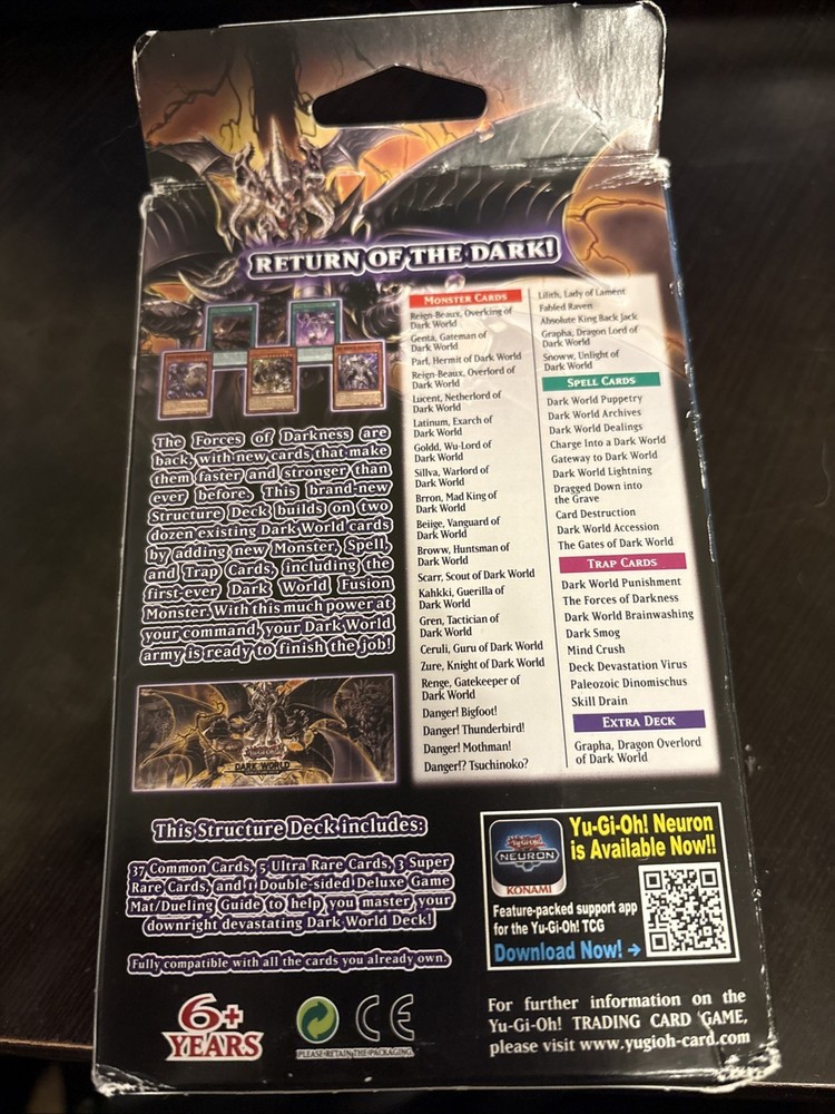 Language:EnglishFeatures:Structure Deck, 1st EditionUPC:0083717859567Manufacturer:Konami, Yu-Gi-Oh!Set:Yu-Gi-Oh! Dark WorldArchetype:DragonAutographed:NoVintage:NoMPN:KON85957Year Manufactured:2022Age Level:6+Number of Decks or Kits:3Game:Yu-Gi-Oh! TCGNumber of Cards:45gtin13:0083717859567Configuration:Deck