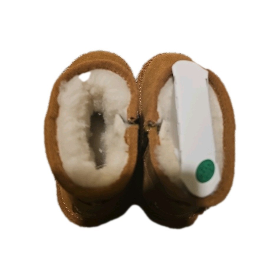 The Koolaburra by UGG T Koola Mini Boot in Chestnut is a stylish and comfortable option for toddler girls in size 8. These solid brown boots feature a round toe, flat heel, and rubber cleat, making them perfect for casual winter wear. The suede upper material and flat heel style provide both durability and support for walking activities. The signature UGG brand ensures quality and a trendy look, making these boots a great choice for any little girl on the go.