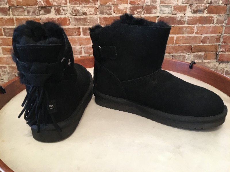 Koolaburra by Ugg Suede Jaelyn Mini Tassel Ankle Boots Black 6 37 NEW Description Koolaburra by Ugg These suede mini boots are made for chilly days, thanks to their cozy sheepskin and faux-fur lining and molded midsole. From Koolaburra by UGG. The features are: Brand new in box Style: Jaelyn Suede upper, tie back tassel Sheepskin and faux-fur lining; lightweight, molded EVA midsole/outsole Approximate measurements: Sole 1"H; Shaft 5"H; Calf circumference 13" Measurements were taken using a Medium size 9; measurements may vary depending on size Half sizes should size up Leather upper; leather/textile lining; man-made balance Be sure to check out my our EBAY STORE. Enjoy! Payment, Shipping & Return Information U.S. Buyers to pay shipping and handling of 8.95 for 1st item. For each additional item add 6.95 . For shipping discount to apply, all items need to paid in one combined payment. Missouri Residents to pay Sales Tax Items may returned in original condition for a refund of the purchase price. Shipping costs will not be refunded, unless an error was made by us. International Shipping rates: Canada via 1st class international: 29.95 Worldwide via 1st class international: 27.95 For Multiple item shipping discounts, Priority Mail or Express Mail International please contact me for a shipping Quote International Buyers - Please note: Import duties, taxes and charges are not included in the item price or shipping charges. These charges are the buyer's responsibility. Please check with your country's customs office to determine what these additional costs will be prior to bidding/buying. Due to the USPS raising international shipping costs, I may have to package without the shoeboxes for some International Shipments. We accept Paypal. Thanks for Looking.