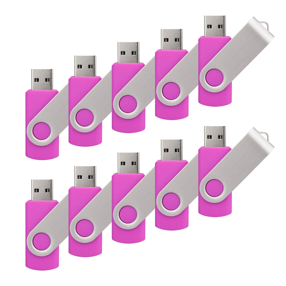Kootion 10pcs 2GB USB 2.0 Metal Swivel Flash Drive 360° Rotating External Memory Stick
