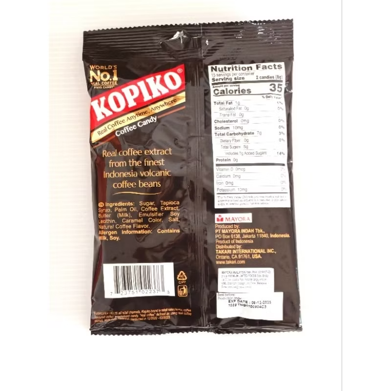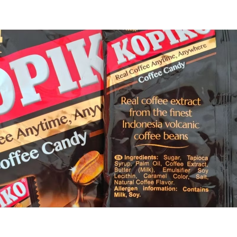The coffee-flavored Kopiko candies contain approximately 6.7 mg of caffeine per candy, while the cappuccino-flavored ones contain about 1.9 mg. More details: Kopiko Coffee Candy: Each coffee-flavored candy contains around 6.7 mg of caffeine. Kopiko Cappuccino Candy: Each cappuccino-flavored candy contains about 1.9 mg of caffeine. Caffeine Source: Kopiko uses real coffee extract derived from coffee beans, according to myAsianStore. Caffeine Equivalency: Some sources suggest that consuming 4-5 Kopiko coffee candies is equivalent to drinking one cup of coffee in terms of caffeine content. Consumption Advice: Due to the caffeine content, Kopiko candies are not recommended for children, pregnant women, or individuals sensitive to caffeine.