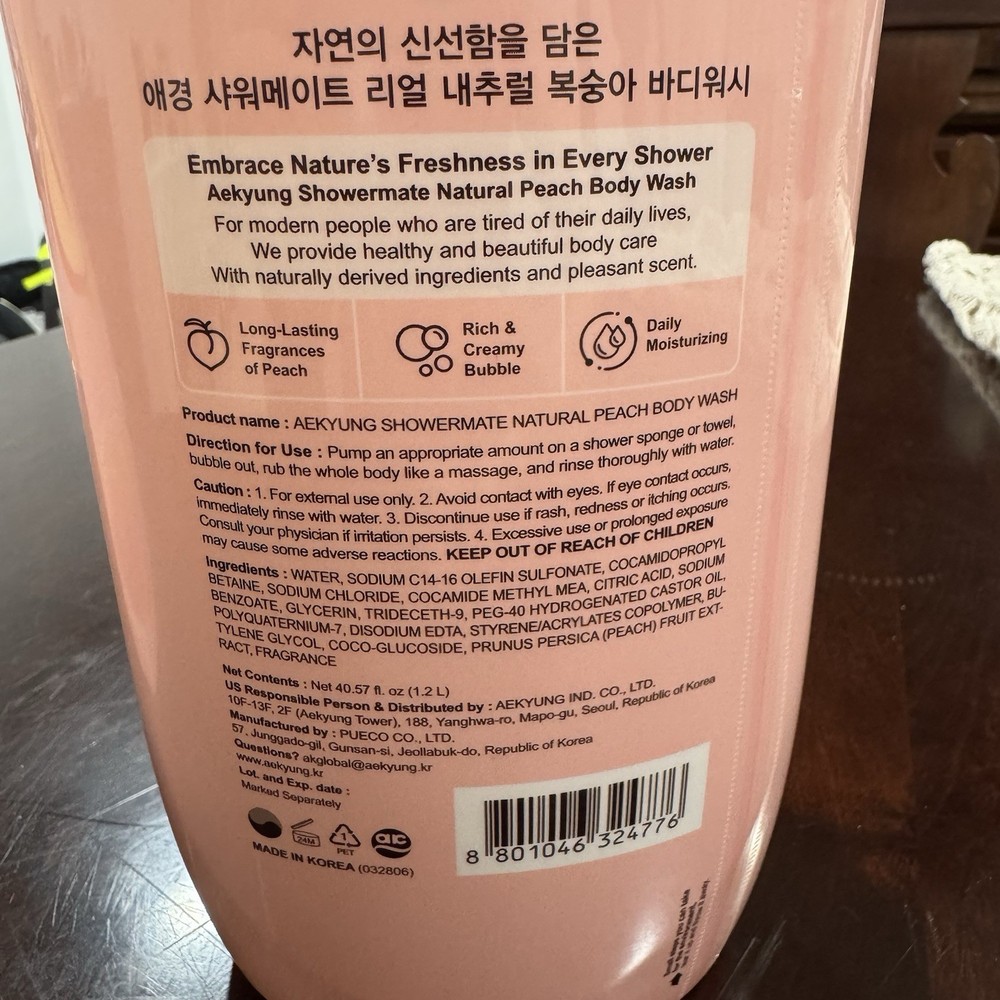 SHOWER MATE TWIN PACK! KOREAN Peach Moisturizing Body Wash - 40.57 Oz. EA - NEW!