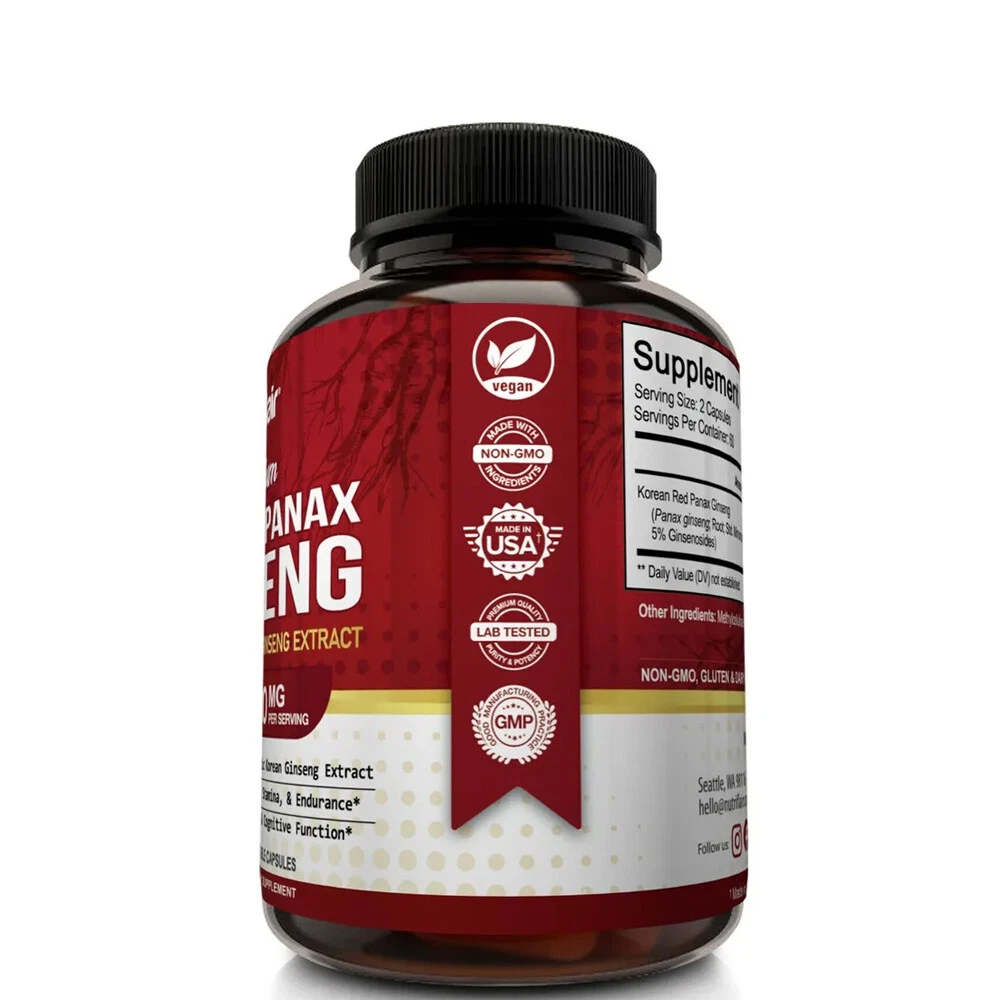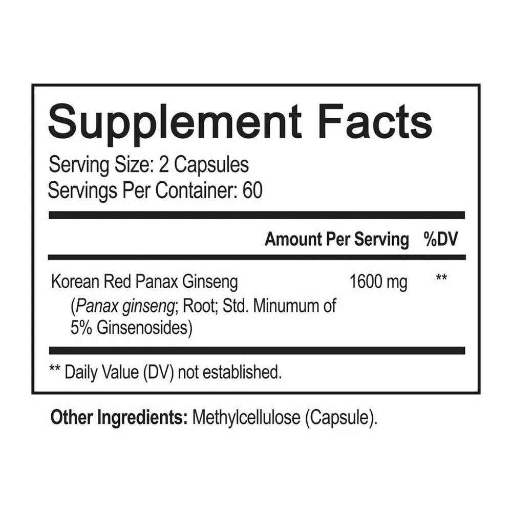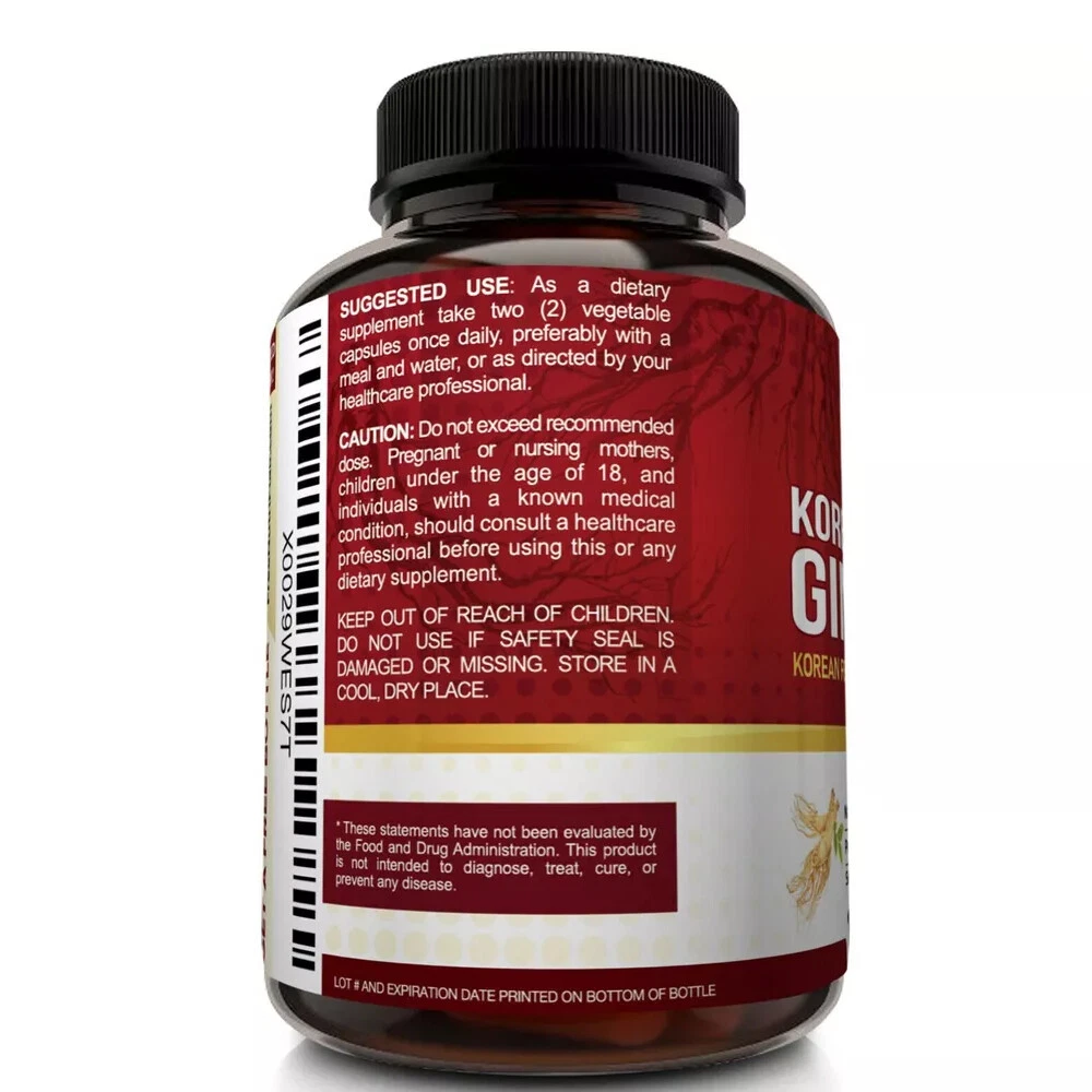 Korean Red Panax Ginseng 1600mg, 120 Caps 5% High Strength NON-GMO Ginsenoside