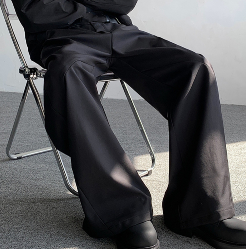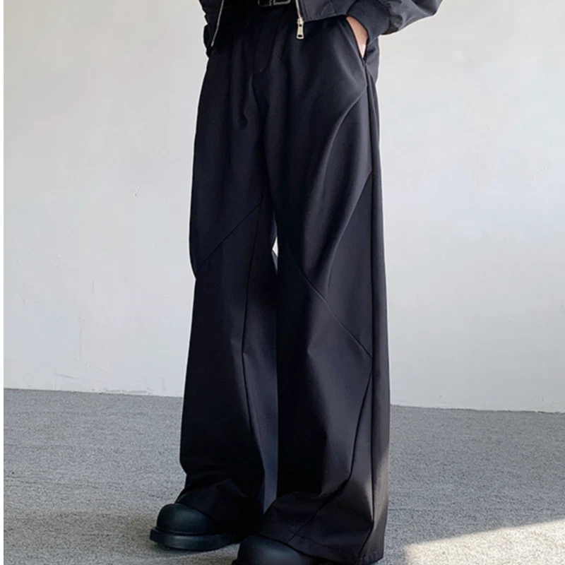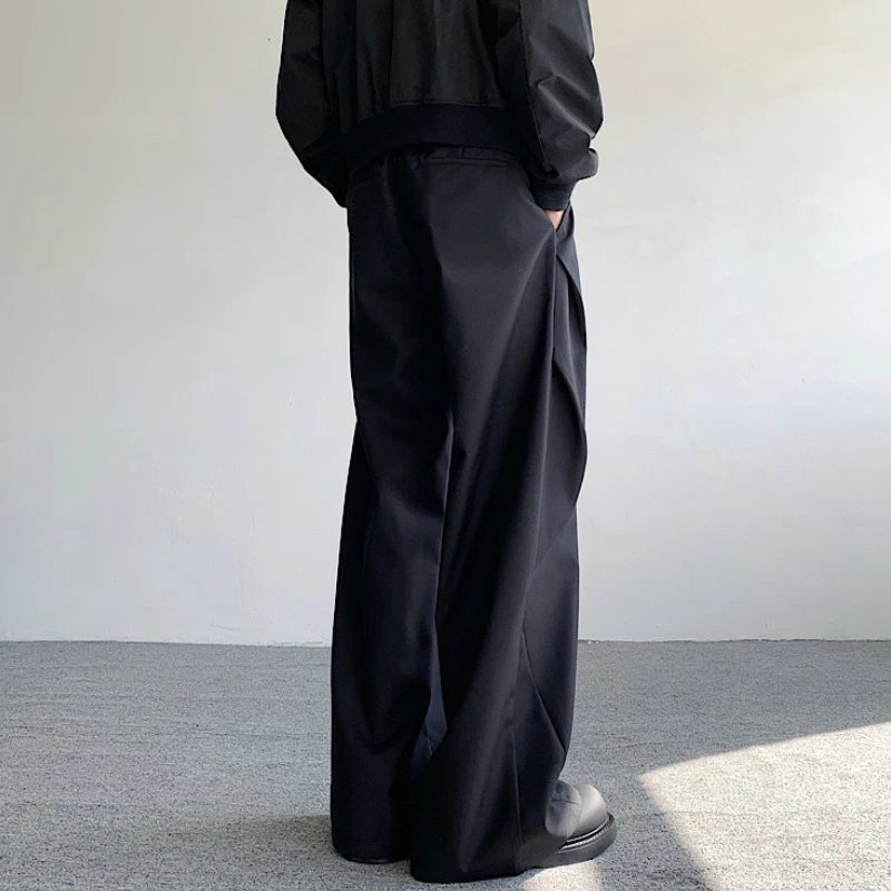 Korean Streetwear Casual Wide Leg Draping Pants Men Baggy Suit Trousers