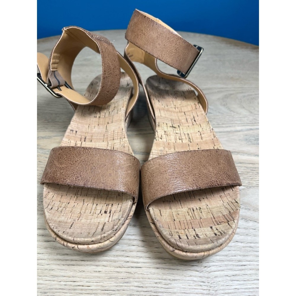 Kork Ease Mullica Leather Ankle Strap Wedge Sandal Tan Brown Adjustable buckle closure at ankle strap. Leather lining with a cushioned footbed for added comfort. Cork-wrapped platform on a durable man-made outsole. Women’s Size 10 Heel Height: 1.5” Platform Height: .75” Please review all photos!