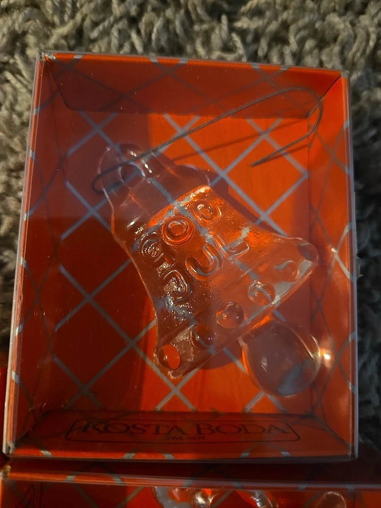 Kosta Boda Sweden Glass Christmas Ornament Lot - Gingerbread-Reindeer-Bell