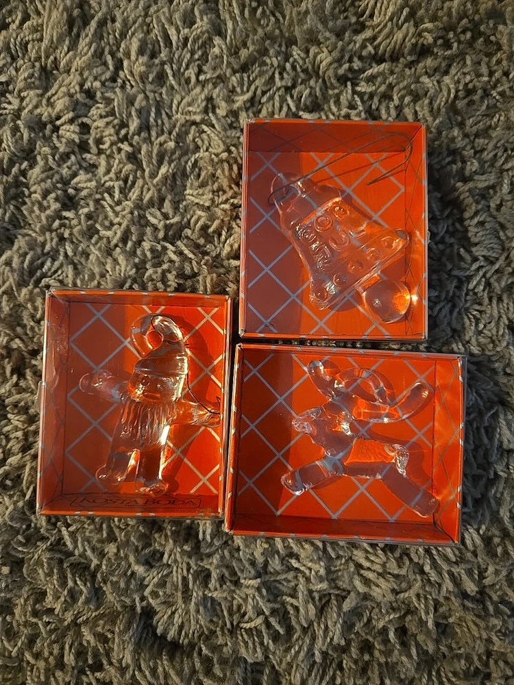 Material: Glass Country/Region of Manufacture: Sweden Vintage: Yes Color: Clear Set Includes: Ornament Occasion: Christmas Brand: Kosta Boda Character: Belle Theme: Christmas Shape: Reindeer Collection: Ornaments Subject: Gingerbread Type: Ornament Number of Items: 3
