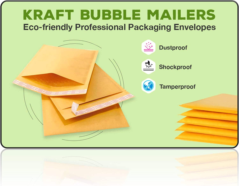 KRAFT BUBBLE MAILERS - This pack contains 50 light weight bubble cushoined mailer envelopes. Outside size: 8.5X14.5 inches, usable size: 8.5X13.5 inch. DURABLE: The surface of this bubble envelopes made from a durable, recycled kraft paper. The interior built with bubble lined wall construction for extra protection during transit, ensure the packages arrive in great condition MATERIAL - These Kraft Bubble Mailers are made out of polypropylene material, 3/16" bubble cushioning wraps to help keep objects safe in shipping. They are 100% light weight and ad no cost to your shipping destination. SELF-ADHEARING - Peel-and-seal strip is quick and easy to use. Remove strip and close. Once the envelope has been sealed, it cannot be opened without visible signs of tampering. Puncture, tamper and water resistant providing extra security for item being shipped. Gold Kraft bubble mailers #3 8.5x14.5 Inches with 3/16” bubble cushioned wraps help ship your products to customers in a safe packaged mailer. Whether you’re shipping crafts to customers or gifts to family and friends, our high quality bubble bags make an excellent package that allows you to send your items with confidence and ease. You can count on these envelopes to not only close securely, but to also protect your valuable shipment from inclement weather and excessive moistures. Lined with thick, yet airy, bubbles, these mailers embrace your items in a safe cushion of air and plastic, ensuring their safe arrival at their definition. Peel-and-seal strip is quick and easy to use. Remove strip and close. Once the envelope has been sealed, it cannot be opened without visible signs of tampering. Puncture, tamper and water resistant providing extra security for item being shipped. Order your supply of these poly bubble mailers today to avail our quick shipping policy.
