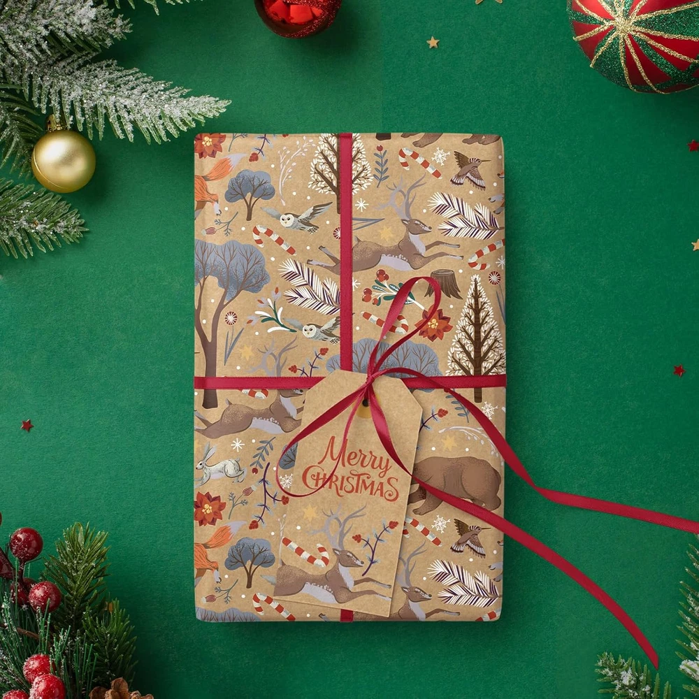 PERFECT SIZE: Each roll measures 17 inches wide by 33 feet long. CHRISTMAS DESIGN: Kraft animal and tree elements design, will make your gift unique and varied. PREMIUM QUALITY: Created with high-quality kraft paper materials, thick and not easily tear or rip. Item came with shrink film to prevent wrapping paper from scratches and reduce dust. USE ALL WINTER: Perfect for Christmas, Holiday, Party. It is also great for decorating Christmas tree. The christmas wrapping paper can be used to add a splash of color to all of your gifts. Your family, children, friends will feel your sincere christmas wishes this holiday season. PERFECT SIZE: Each roll measures 17 inches wide by 33 feet long. CHRISTMA DESIGN: Kraft santa claus, elk, Christmas sled with "Merry Christmas‘’ lettering design, will make your gift unique and varied. PREMIUM QUALITY: Created with high-quality kraft paper materials, thick and not easily tear or rip. Item came with shrink film to prevent wrapping paper from scratches and reduce dust. USE ALL WINTER: Perfect for Christmas, Holiday, Party. It is also great for decorating Christmas tree. The christmas wrapping paper can be used to add a splash of color to all of your gifts. Your family, children, friends will feel your sincere christmas wishes this holiday season. QUALITY CUSTOMER SERVICE: Any question about products or orders, please feel free to contact the customer service, we will try our best to solve the problem.