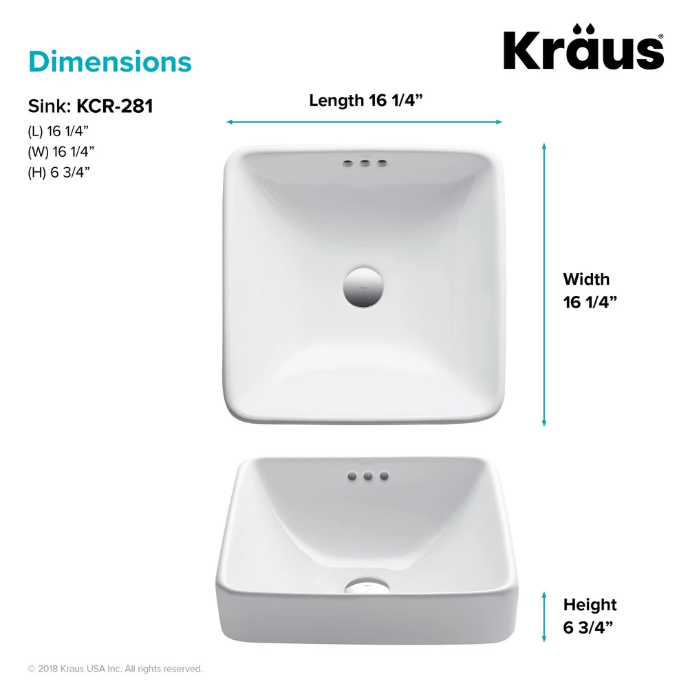 Item Width: 17 in Brand: Kraus UPC: 846639023924 Type: Sinks MPN: KCR-281 Features: Kraus KCR-281 Elavo 16-1/4" Vitreous China Drop In California Prop 65 Warning: Yes Material: Porcelain Item Length: 16 in Collection: Elavo Item Height: 6.688 Finish: White Mounting: Drop-In gtin13: 846639023924 Model: KCR-281 Color: White Country/Region of Manufacture: China