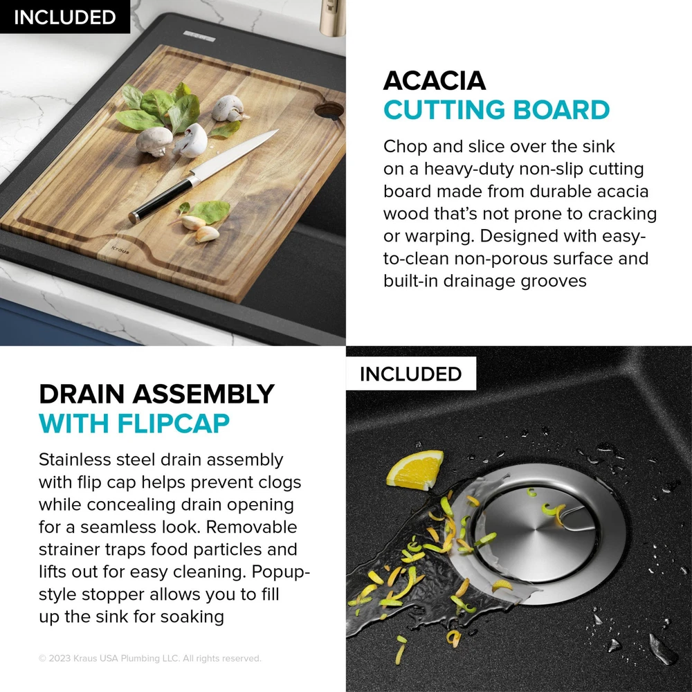 Kraus KGTW12-28 Bellucci 28" Drop In Single Basin Granite - Black