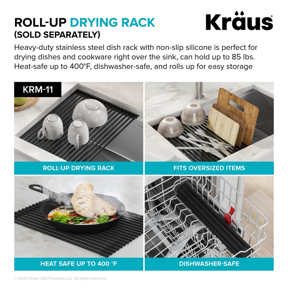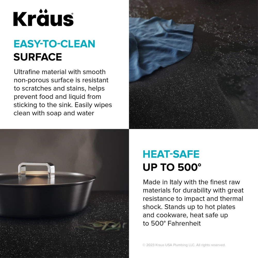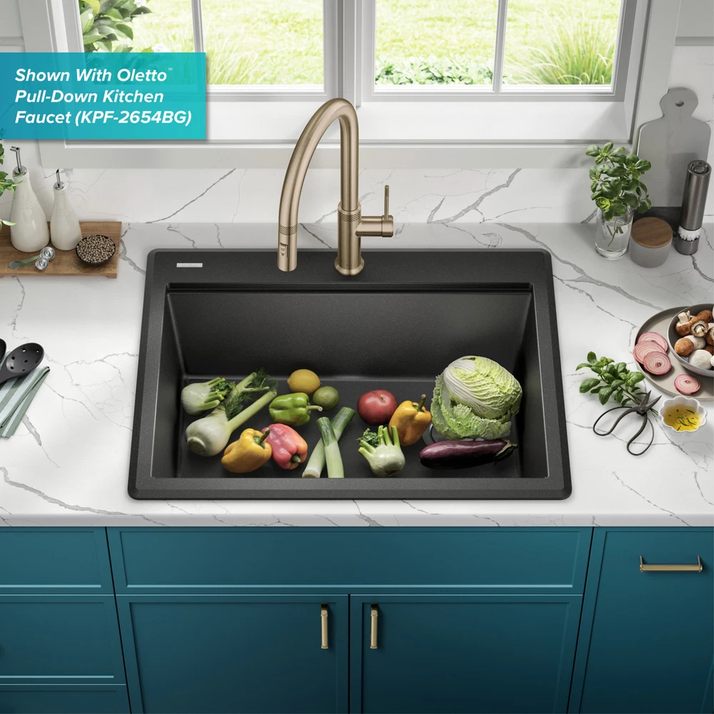 Powered by Frooition All Categories Kraus KGTW12-28 Bellucci 28" Drop In Single Basin Granite Composite Kitchen Sink with Basket Strainer and Cutting Board Overview Item Description Engineered with an integrated ledge for accessories and rounded corners for easy cleaning, Bellucci granite kitchen sinks create a multifunctional workspace to streamline all your kitchen tasks. Advanced quartz composite material offers the look and feel of a granite sink with an easy-to-clean non-porous surface that is resistant to scratches, stains, impact, and thermal shock. Included cutting board allows you to work over the sink without losing counter space. Designed as a top mount sink with thick mounting deck for drop in installation with any countertop material and sloped bottom for improved draining. Colored all the way through, the vibrant material resists fading over time. Mounting hardware and drain assembly included. Kraus KGTW12-28 Features: Covered under Kraus's limited lifetime warranty Constructed of granite composite Drop in installation - sink will drop into a cutout in the countertop Single basin design for maximum work space Sink comes pre-drilled with one faucet hole for use with a single hole faucet Right drain location Coordinates with products from the Bellucci line All mounting hardware required for assembly is included Kitchen sink kit includes: quartz composite drop in workstation sink, heavy-duty acacia hardwood cutting board, stainless steel drain assembly with strainer Gently sloped bottom helps prevent water from pooling in the kitchen sink - optimized slope helps keep your fragile stemware from tipping over Advanced quartz composite is made from 80% natural quartz with metallic particles for a shimmering effect with the look and feel of a granite sink - made in Italy with the finest raw materials for durability with resistance to impact, scratches, and thermal shock Ideal for retrofitting, you can install this sink for kitchen as a drop in with any type of kitchen countertop - thick deck sits flat against the countertop for a beautifully finished look Thick mounting deck is designed with a low-angle beveled edge for easy cleaning - 1 pre-drilled hole and 2 pre-scored knockout holes in mounting deck allow for easy installation of kitchen faucet and accessories Single bowl sink with uninterrupted surface provides generous workspace for large cookware and stacks of dishes - rear-offset drain increases storage space underneath the workstation sink Ultrafine material with smooth non-porous surface is resistant to scratches and stains, resists food and liquid from sticking to sink surface - easily wipes clean with soap and water Naturally sound-absorbing material helps reduce noise and vibration from dishes and garbage disposals for a quieter kitchen experience Recommended accessories (sold separately): roll-up dish drying rack (KRM-11) made with heavy-duty stainless steel and non-slip silicone is perfect for drying dishes right over the sink. Holds up to 85 lbs., dishwasher-safe, heat-safe, and rolls up for easy storage Heavy-duty cutting board made with durable acacia hardwood creates a stylish accent for your sink - not prone to cracking or warping, with a non-slip design and built-in grooves that prevent spills - easy to clean non-porous surface is resistant to odors and stains Stainless steel drain assembly with flip cap cover helps prevent clogging while concealing drain opening for a seamless look - removable strainer traps food particles and lifts out for easy cleaning Please note: although Kraus granite composite sinks are heat resistant, placing hot items right from the stove or oven directly into the sink may cause surface discoloration. Consider using a trivet or rolling mat for extremely hot items to avoid potential damage Kraus KGTW12-28 Specifications: Sink Length: 28" (left to right) Sink Width: 22" (front to back) Sink Height: 9-5/8" (top to bottom) Faucet Holes: 1 Minimum Cabinet Size: 30" Why Choose BuildInc? OUR PROMISE TO YOU About Us At Build, we promise to provide the best selection we can, most competitive pricing, and unmatched customer service. Our store has quality home improvement products from trusted manufacturers like Moen, American Standard, Delta, Kraus, Kichler, Progress Lighting, Schlage, Kwikset, Baldwin, Broan, NuTone, Air King, and Rev-A-Shelf. With over 200,000 home improvement products for you to choose from, we have just what you need to get your project done. Fast & Free Shipping We promise to make it our priority to get you your items as fast as we can. We ship from 440 warehouses around the country, ensuring that your product will get to you as soon as possible. We know you're eager to get your hands on your new purchase, we would be too. As a bonus, most items ship for free. Returns We are happy to accept returns of unused or defective items for a refund within 30 days from the date of delivery. For returns outside 30 days, please contact our Customer Service team to go over our options. For full details, please view the Shipping and Payments tab above. To initiate a return simply go to the eBay Returns Portal and submit a return request. We ask that all items be returned with all original components via a traceable method. Once your return is received and processed, we will quickly get your refund or replacement issued. If for any reason you are unsatisfied with your purchase or for product or warranty questions, please contact Customer Service team for assistance. More Items! View more great items! About Us | Shipping | Returns | Contact Us | FAQ | Collections | Special Offers! Powered by Frooition Frooition Frooition | No-js Template | eBay design, eBay store design, eBay shop design, eBay template design, eBay listing design (ver:froo_no_js) This listing is currently undergoing maintenance, we apologize for any inconvenience caused.