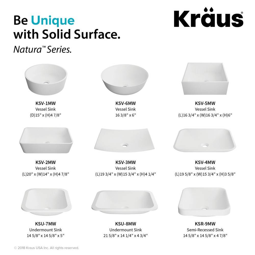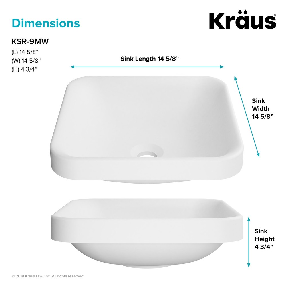 Powered by Frooition All Categories Kraus KSR-9 Natura 14-3/5" Solid Surface Stone Composite Drop In Bathroom Sink Overview Item Description Kraus KSR-9 Features: Covered under Kraus' limited lifetime warranty Made of solid surface stone composite Installs in a drop in configuration Center drain - less drain assembly Product Technologies / Benefits: Highly Resilient Material: The unique composition of stone composite material offers superior durability and resistance to impact. High-Quality Matte Finish: Sink surface is smooth and soft to the touch. Proprietary finishing process ensures a consistently flawless surface. Proprietary Nano Coating Technology: Ultra-thin, hard gelcoat layer offers superior resistance to scratches and stains. Easy to Clean: Non-porous surface is resistant to mold, mildew, and water spots. Tough stains such as makeup and wine can easily be removed. Kraus KSR-9 Specifications: Overall Length: 14-3/5" (left to right of sink) Overall Width: 15" (front to back of sink) Overall Height: 4-4/5" (top of bottom of sink) Basin Width: 14-3/5" (front to back of basin) Basin Length: 14-3/5" (left to right of basin) Basin Depth: 4-4/5" (top to bottom of sink basin) Drain Connection Size: 1-3/4" Why Choose BuildInc? OUR PROMISE TO YOU About Us At Build, we promise to provide the best selection we can, most competitive pricing, and unmatched customer service. Our store has quality home improvement products from trusted manufacturers like Moen, American Standard, Delta, Kraus, Kichler, Progress Lighting, Schlage, Kwikset, Baldwin, Broan, NuTone, Air King, and Rev-A-Shelf. With over 200,000 home improvement products for you to choose from, we have just what you need to get your project done. Fast & Free Shipping We promise to make it our priority to get you your items as fast as we can. We ship from 440 warehouses around the country, ensuring that your product will get to you as soon as possible. We know you're eager to get your hands on your new purchase, we would be too. As a bonus, most items ship for free. Returns We are happy to accept returns of unused or defective items for a refund within 30 days from the date of delivery. For returns outside 30 days, please contact our Customer Service team to go over our options. For full details, please view the Shipping and Payments tab above. To initiate a return simply go to the eBay Returns Portal and submit a return request. We ask that all items be returned with all original components via a traceable method. Once your return is received and processed, we will quickly get your refund or replacement issued. If for any reason you are unsatisfied with your purchase or for product or warranty questions, please contact Customer Service team for assistance. More Items! View more great items! About Us | Shipping | Returns | Contact Us | FAQ | Collections | Special Offers! Powered by Frooition Frooition Frooition | No-js Template | eBay design, eBay store design, eBay shop design, eBay template design, eBay listing design (ver:froo_no_js) This listing is currently undergoing maintenance, we apologize for any inconvenience caused.