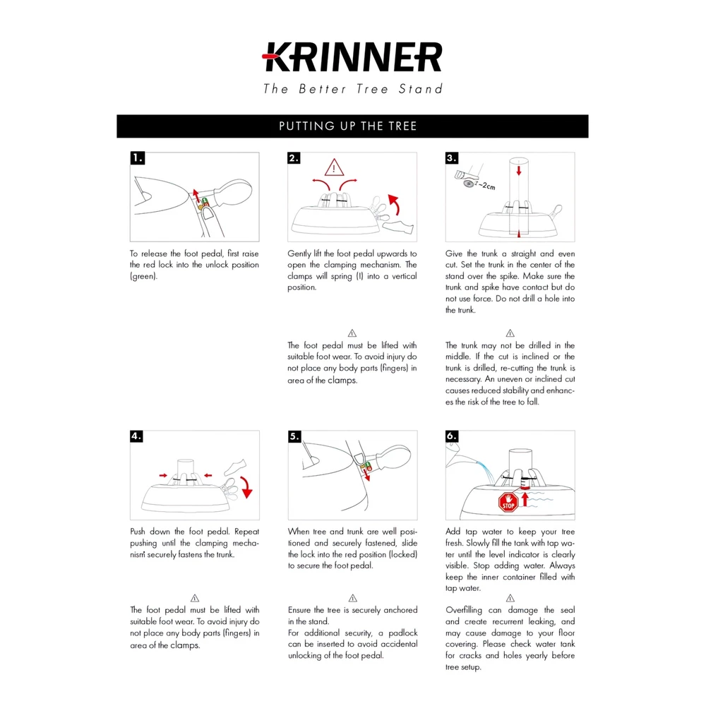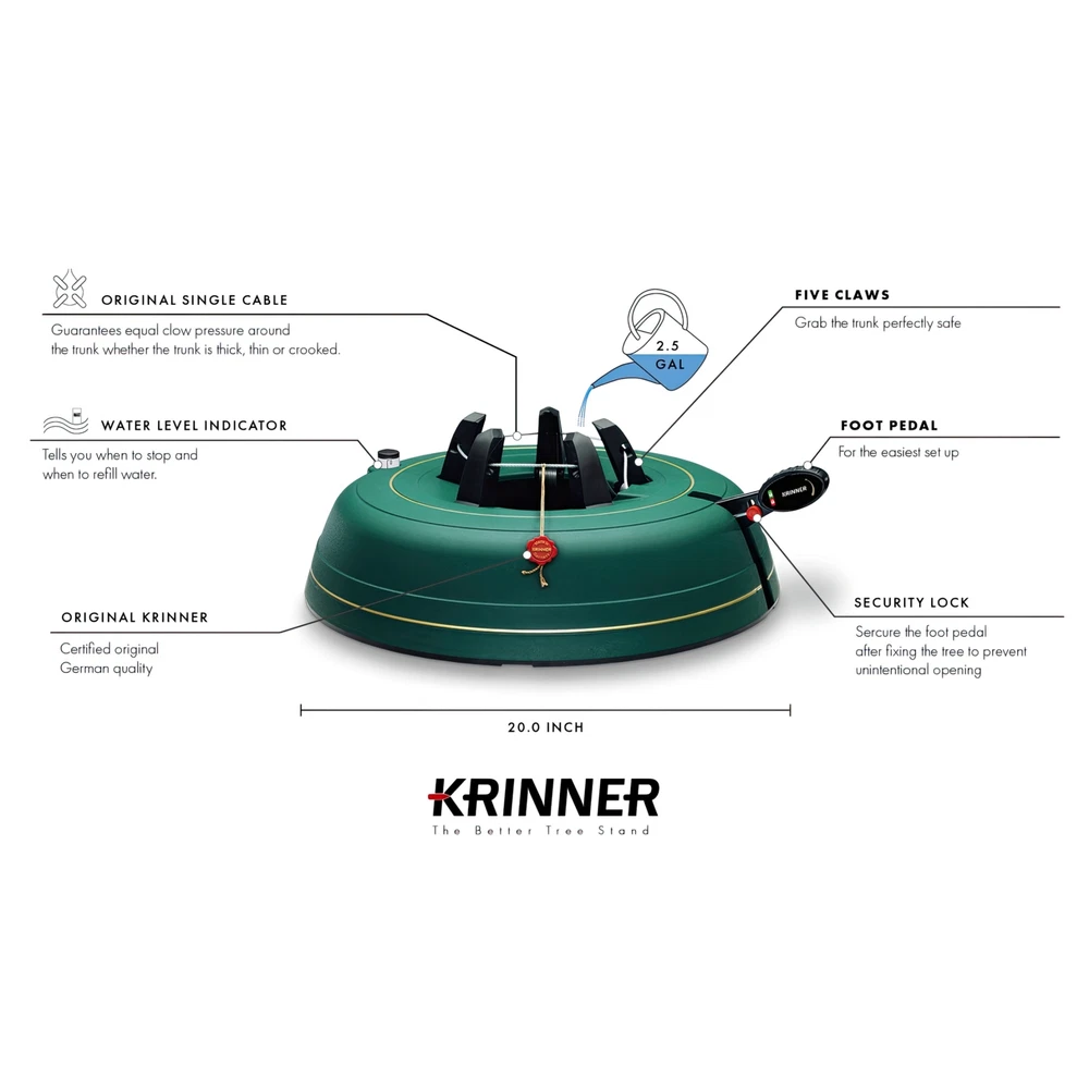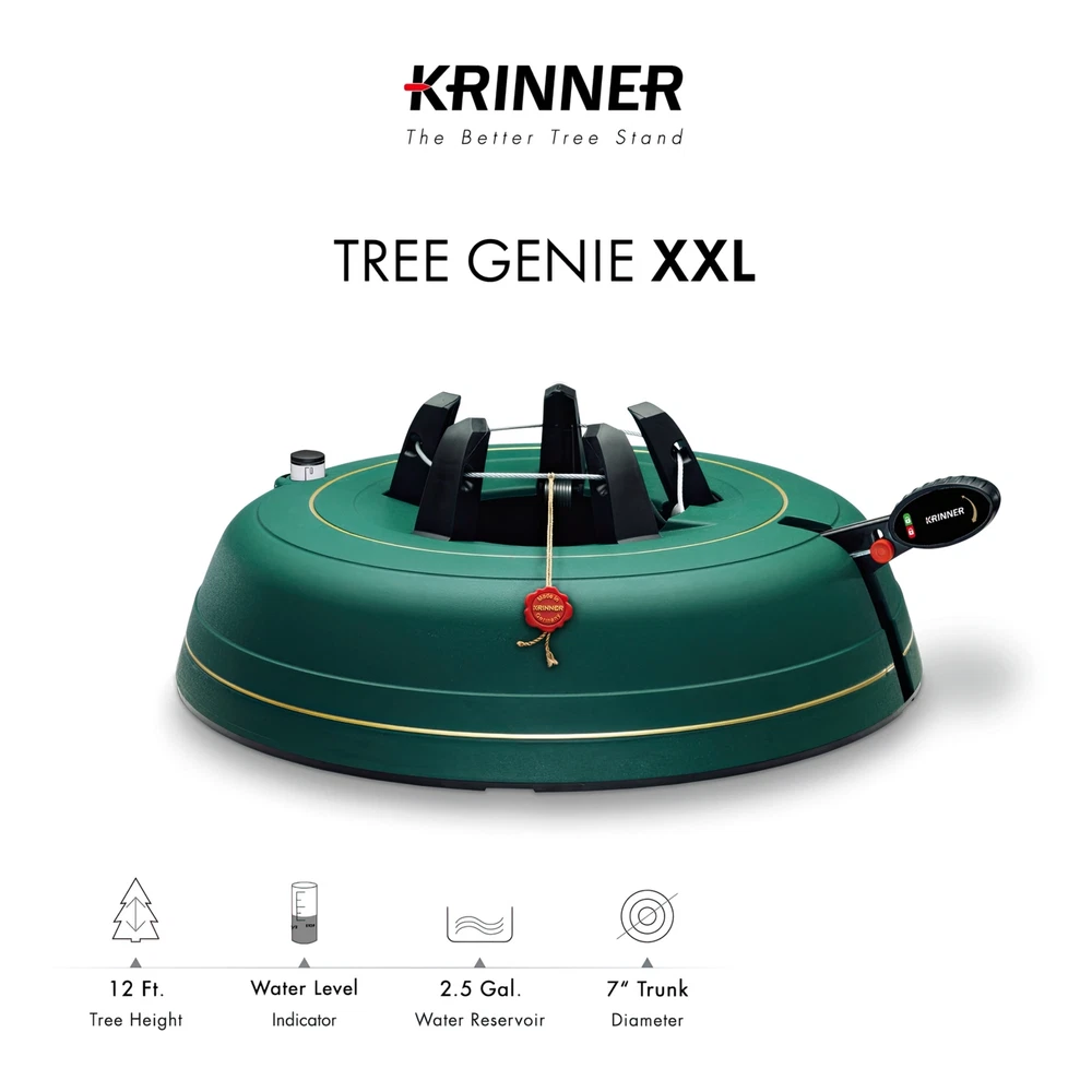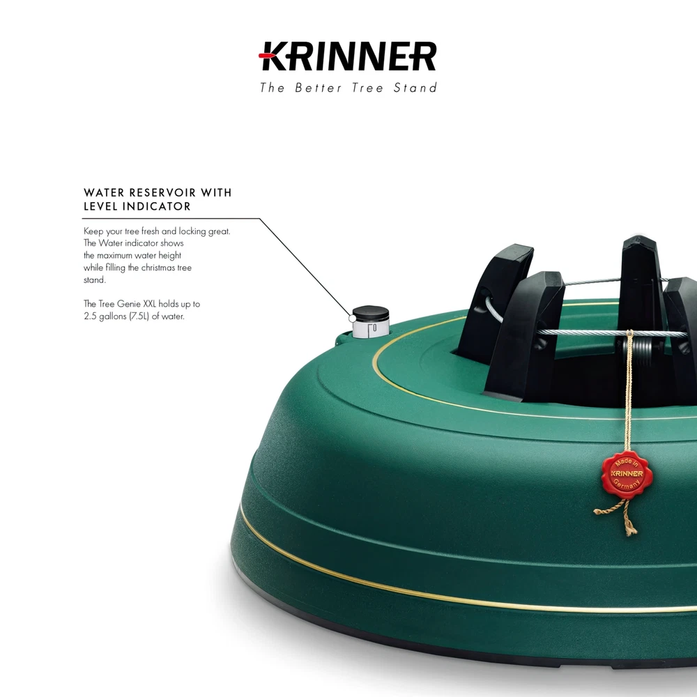 Krinner (#KRI94720) Tree Genie XXL Christmas Tree Stand PRODUCT DESCRIPTION Whether thick, thin, or crooked, your tree will be safely secured by the easy-to-use Krinner XXL Tree Genie Christmas Tree Stand. Key Product Features Krinner's original single cable operation 2.5 gallons of water with level indicator Wider and heavier for perfect stability Tree height: up to 12 feet Weight of stand: 18 lbs Base diameter: 20 inches Maximum trunk diameter: 7 inches Finally you and your family can have a stress-free Christmas season with the easy-to-use Krinner tree stands! Krinner's Christmas Tree Genie XXL is our largest and best selling tree stand with the inventor’s original single cable operation. Just place your tree in the open stand and pump the foot pedal until the claws firmly hold the trunk. Made in Germany.