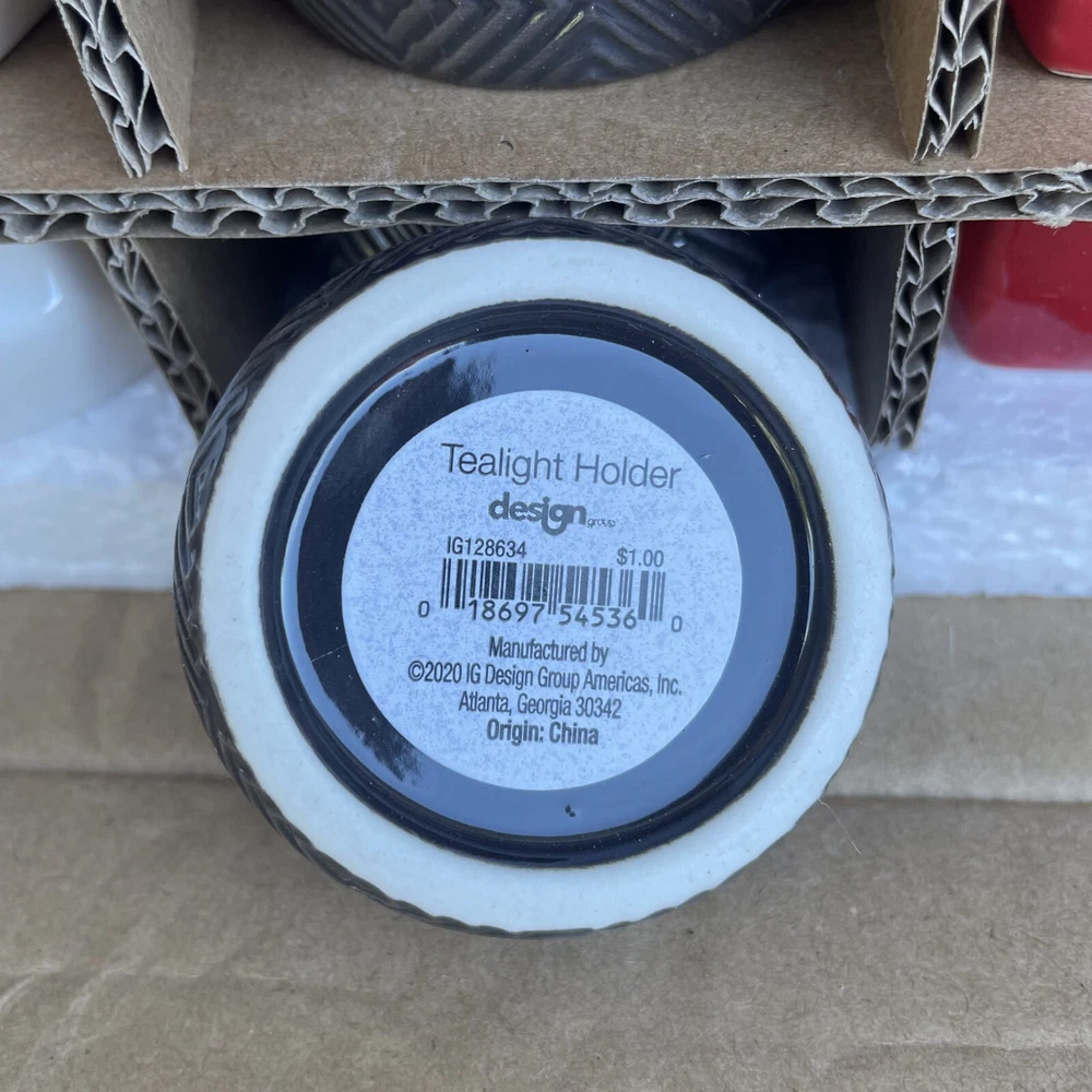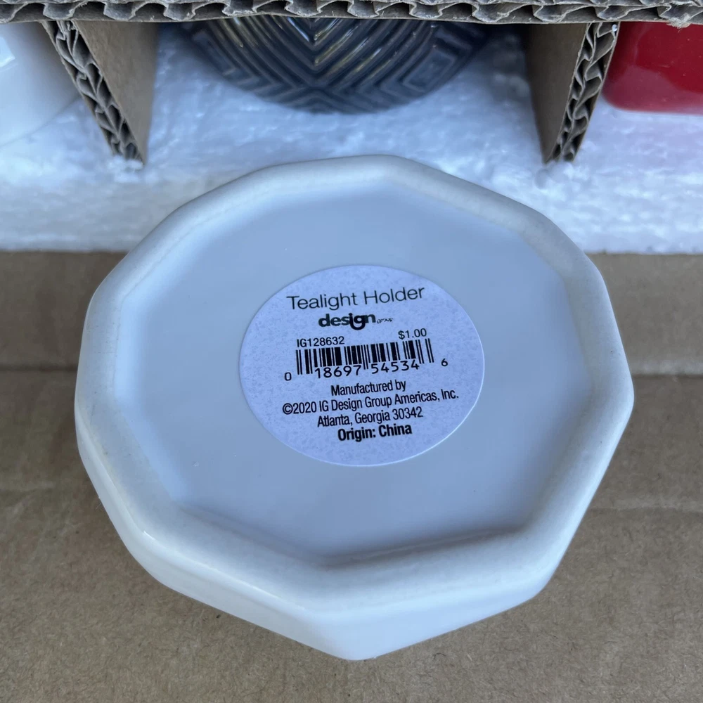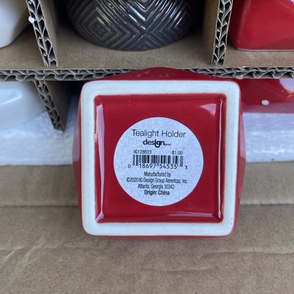 18 Ct Votive Tealight Candle Holder Assorted Shapes and Colors 6 Red Square 2.5" 6 White Octogon 2.75" 6 Round Brown 2.25" For inventory - Alakska Shelf #4