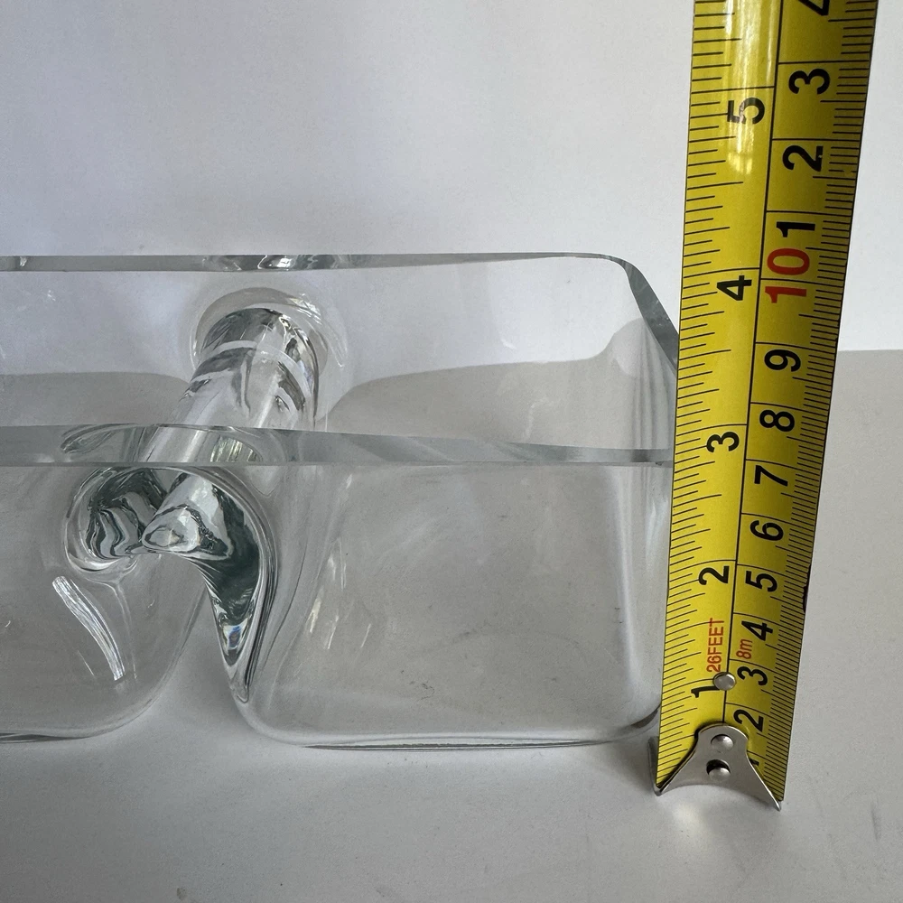 $ 39.59VINTAGE etched glass condiment dish with feet; no damage; lgth 12"; wid 7 1/2"