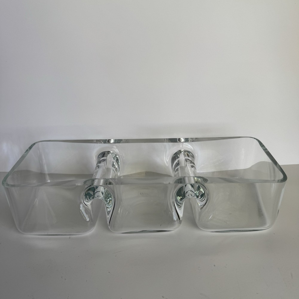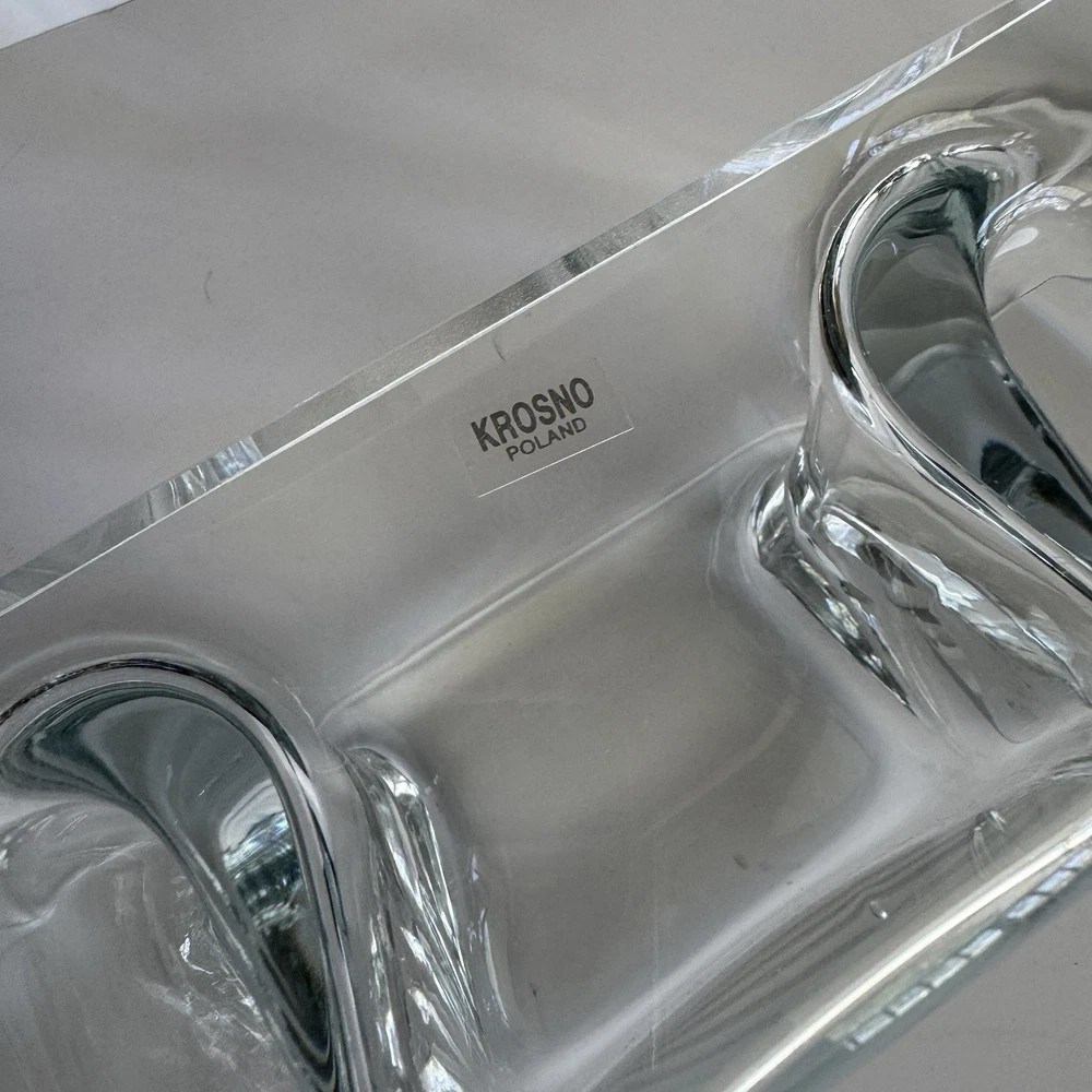 Krosno Poland Clear Art Glass Rectangular Divided Candy Nut Relish Dish Bowl Has a small chip on the inner edge