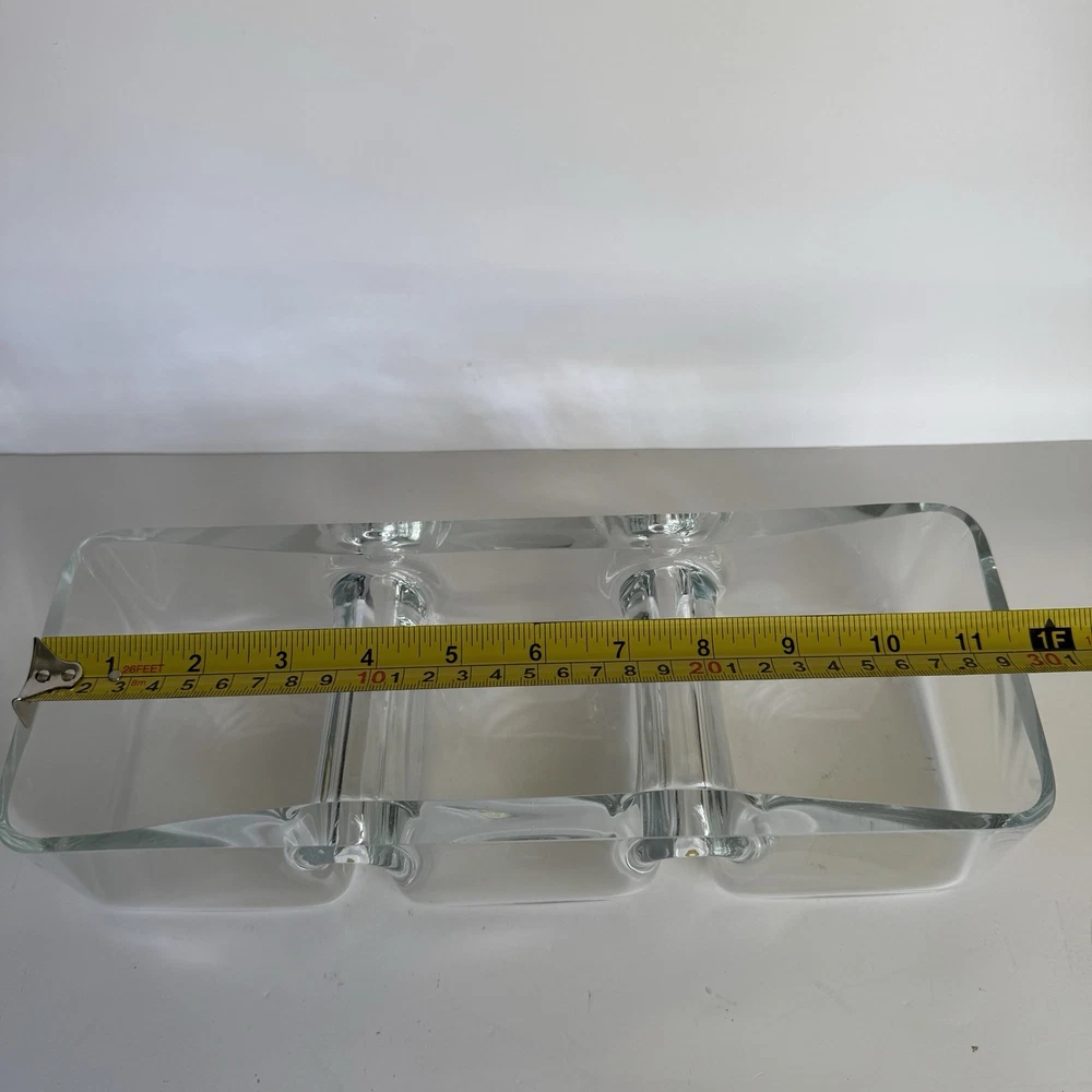 Type:Candy DishNumber of Items in Set:1MPN:N/AStyle:Mid-Century ModernAntique:NoMaterial:GlassNumber of Compartments:3Backstamp:StickerCountry of Origin:PolandOriginal/Licensed Reproduction:OriginalVintage:YesPattern:SolidShape:RectangleColor:ClearProduction Technique:GlassTime Period Manufactured:1960-1969Finish:GlossyBrand:KrosnoProduction Style:Art Glass