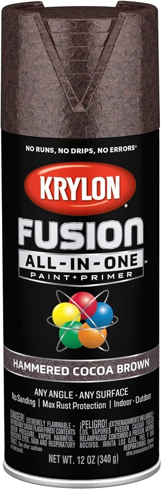 Introducing Krylon Fusion All In One Spray Paint, the perfect solution for all your painting needs. This 5x stronger 12 oz spray paint is available in a variety of colors to choose from. Designed by Krylon, a trusted brand in the industry, this spray paint is perfect for other paint, stain, and varnish projects, as well as home improvement and building & hardware applications. With its easy-to-use spray mechanism, this Krylon Fusion All In One Spray Paint provides a smooth and even coat every time. Whether you're a professional painter or a DIY enthusiast, this spray paint is the ideal choice for your project. So why wait? Order now and experience the power of Krylon Fusion All In One Spray Paint. Whether you’re tackling a DIY furniture project or giving new life to old items, Krylon Fusion All-In-One Spray Paint can get the job done. This spray paint delivers best in class adhesion, durability and rust protection, and can be used for a wide variety of indoor and outdoor projects. It bonds to difficult surfaces without sanding or priming, including wood, metal, wicker, plastic, glass, plaster/ceramic, PVC, hard vinyl, tile, wrought iron, masonry and laminate .spray paint offers a modern, cozy finish to any project with an on-trend look. This Coffee Bean brown is a classic color, and should be kept on hand with DIY supplies and in a craft or tool kit. spray paint can soften and add a unique feel. Krylon Fusion All-In-One Spray Paint,is a premium product that delivers best in class adhesion, durability and rust protection Indoor/outdoor spray paint with maximum rust protection Krylon brown all-purpose spray paint bonds to difficult surfaces without sanding or priming Big button spray tip with spray any way capabilities